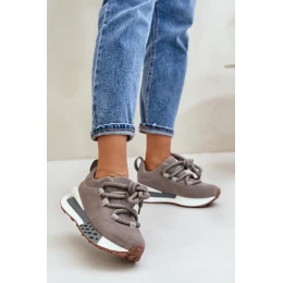 Dámské tenisky z přírodního semiše. Stojí na platformě. Tento model se vyznačuje silným šněrováním. Platforma poskytuje dodatečné pohodlí a lehkost při chůzi a zároveň přidává několik centimetrů výšky. Skvěle se hodí ke každodenním outfitům i ležérnějším sestavám. Vyberte si je, abyste podtrhli svůj jedinečný styl a užili si celodenní pohodlí.