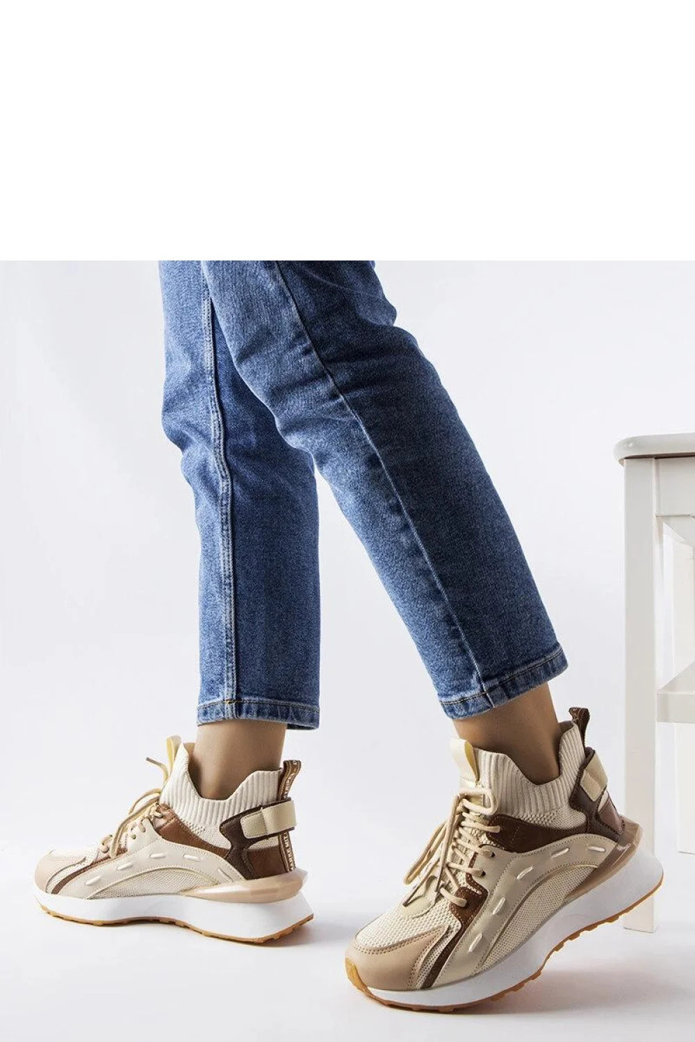 Beige sportovní tenisky z materiálu jsou ideální volbou pro aktivní ženy hledající stylovou a pohodlnou obuv. Vyrobené z vysoce kvalitní gumy, poskytují nejen pohodlí, ale také odolnost a odolnost proti poškození. Kulatá špička a šněrování zaručují stabilitu během fyzické aktivity. Díky kombinaci béžové barevnosti s moderním vzorem jsou tyto tenisky skvělým doplňkem každodenních stylizací a skvěle se hodí jak na trénink, tak na procházku nebo setkání s přáteli. Vynikající na jaro a léto!
