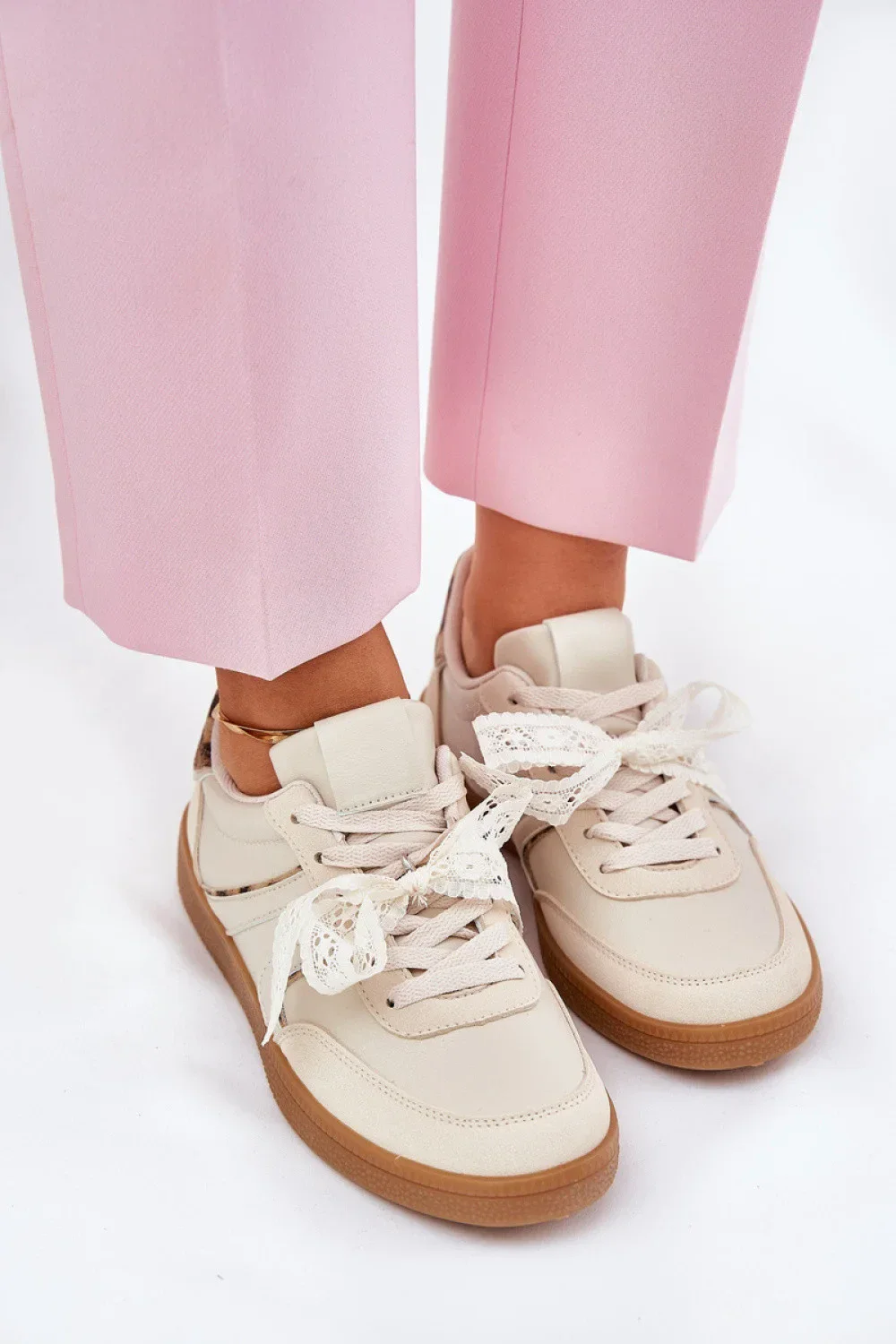 Stylové dámské tenisky z ekokože s nízkým střihem, které spojují pohodlí s módním vzhledem. Vyjímatelná pěnová stélka potažená materiálem poskytuje pohodlí a dostatečnou tlumení po celý den. Na šněrování je ozdoba v podobě krajkového proužku, který lze odstranit a přizpůsobit tak vzhled dle vlastních preferencí. Skvělé pro každodenní outfit, tyto tenisky se vyznačují jedinečným vzhledem.