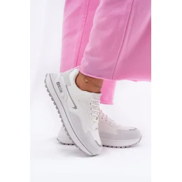 Tenisky dámské značky Big Star. Vyrobené z ekologické kůže. Umístěné na platformě. Špičky bot jsou zaoblené, co zajišťuje pohodlí po celý den. Vložka HI-POLY SYSTEM, pocházející z recyklace, se vyznačuje odolností proti otěru a deformacím, stejně jako účinně absorbuje vlhkost a tlumí nárazy, poskytující pohodlí během intenzivních aktivit. Jedná se o obuv, která spojuje funkčnost s módním vzhledem.