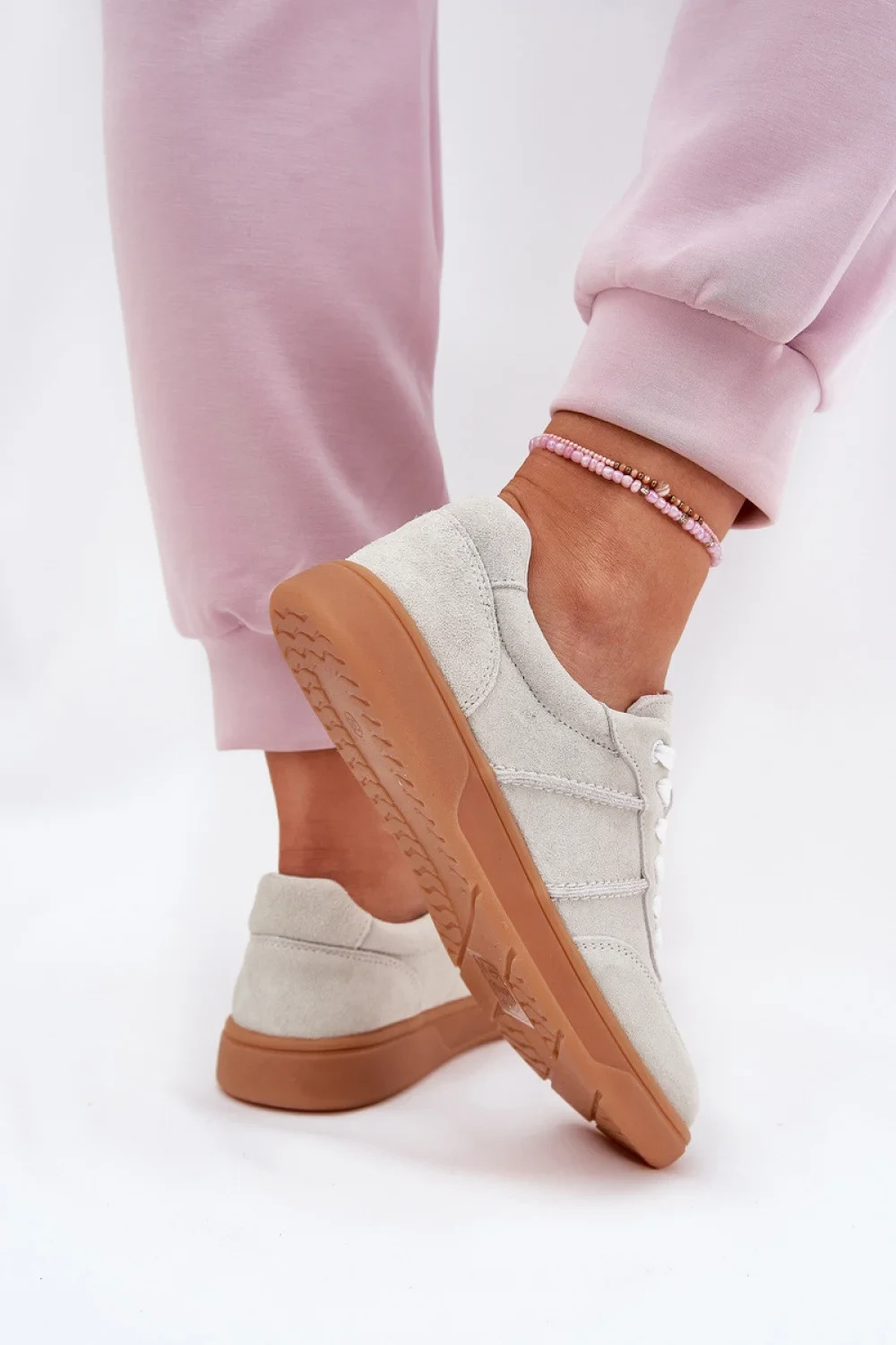 Nízké dámské tenisky vyrobené z přírodního semiše. Špičky bot jsou zaoblené. Klasické šněrování umožňuje ideální přizpůsobení šířce nohy, a kožená stélka zajišťuje pohodlí a tlumení nárazů. Stylové a univerzální, skvěle ladí s různými outfitmi.