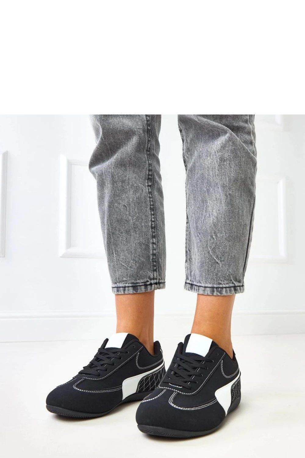 Sportovní boty s bílými akcenty jsou módní a pohodlnou volbou pro každodenní městské outfit. Vyrobené z ekologické semišové kůže, kombinují odolnost s lehkým a moderním designem. Kulatý špičák a šněrování zajišťují pohodlí a ideální přizpůsobení noze. Nízká obuv s decentními bílými detaily dodává čerstvost každému outfitu a sportovní střih zase zajišťuje, že boty jsou univerzální a hodí se k mnoha casualovým kombinacím. Textilní vložka zaručuje pohodlí během celodenního nošení.