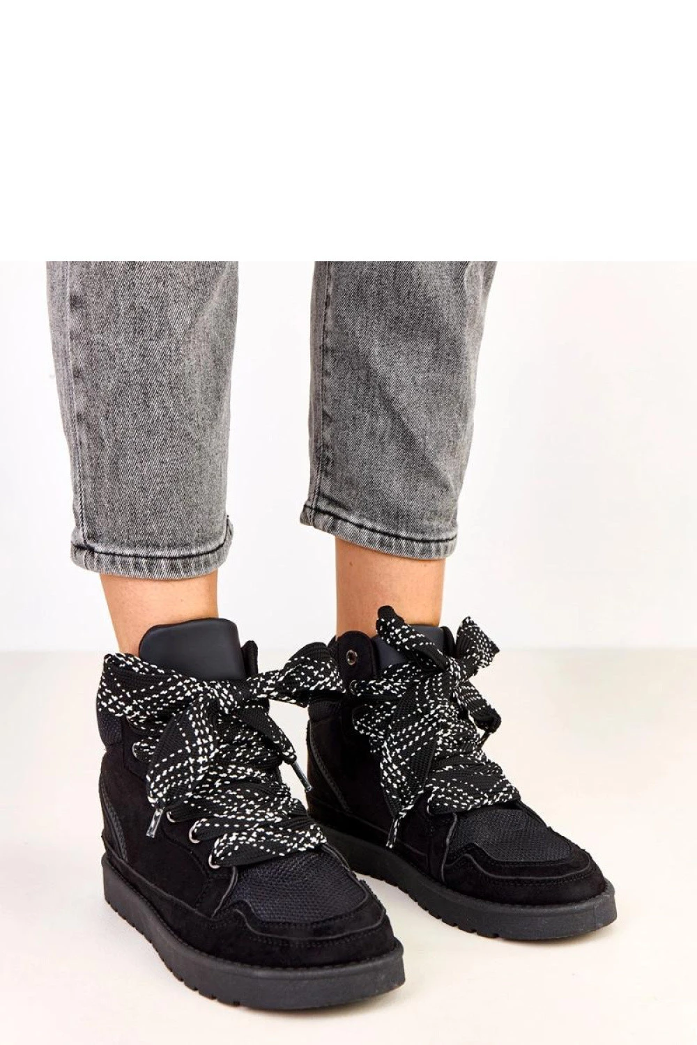 Moderní a pohodlné dámské sportovní boty vyrobené z semišové ekologické kůže, které spojují sportovní charakter s moderním designem. Silné tkaničky jim dodávají originální a výrazný vzhled, zatímco kulatá špička zajišťuje pohodlí během chůze. Model má platformu o výšce 2,5 cm, která jemně zvyšuje postavu, poskytuje stabilitu a pohodlí při nošení. Textilní vložka zvyšuje pohodlí nošení po celý den. Ideální volba pro ženy, které ocení moderní sportovní styl, pohodlí a moderní design pro každodenní, neformální stylizace.