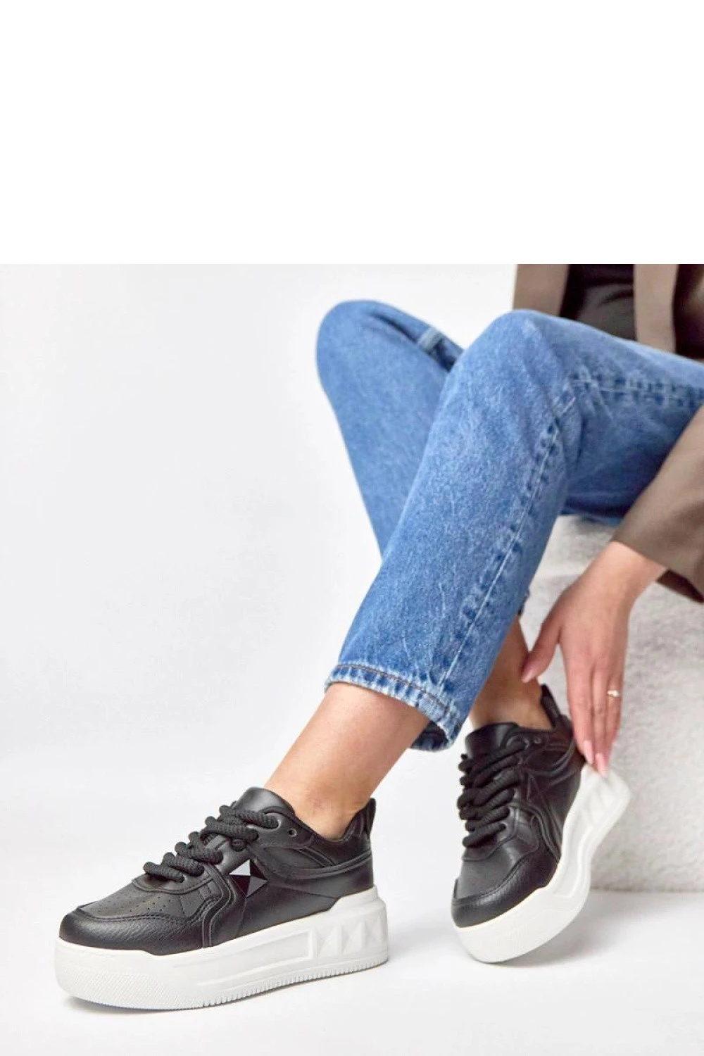 Sportovní boty jsou pohodlnou a stylovou volbou na každý den. Vyrobené z vysoce kvalitní ekologické kůže, působí moderně a jsou snadno udržovatelné. Kulatá špička zajistí pohodlí a volnost pro prsty. Nízký model se šněrováním se dobře přizpůsobí noze a zajistí stabilitu během chůze. Textilní vložka zvyšuje pohodlí při nošení po celý den. Platforma o výšce 5 cm jemně zvýší postavu, přidávajíc několik centimetrů bez ztráty pohodlí.