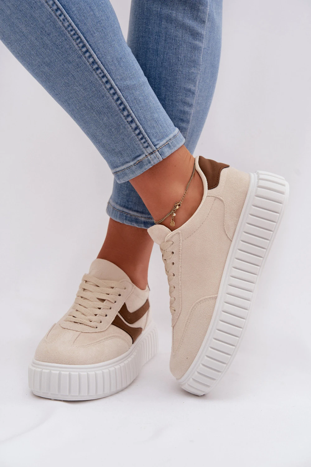 Elegantní tenisky z ekosuede jsou skvělou volbou pro ty, kteří ocení pohodlí a moderní vzhled. Díky platformě obuv nejen zdůrazní postavu, ale také skvěle podtrhne současný styl. Měkká stélka zaručuje pohodlí po celý den. Tyto boty se skvěle hodí do každodenních městských outfitů, kombinují sportovní charakter s moderním vzhledem.