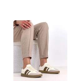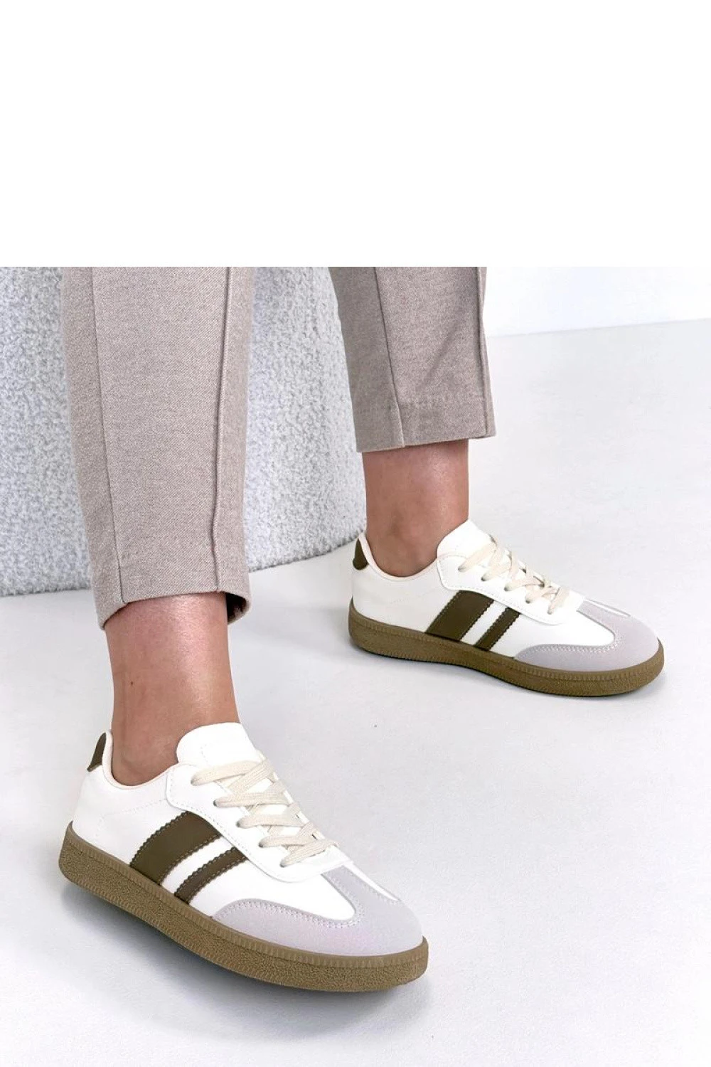 Moderní sportovní boty vyrobené z kvalitní ekologické kůže jsou ideální kombinací funkčnosti a módního designu. Vnější materiál je odolný, snadno se udržuje a esteticky působí, díky čemuž se obuv skvěle hodí pro každodenní nošení. Model má kulatou špičku, která poskytuje pohodlí a dostatečný prostor pro prsty. Nízký svršek dodává botám univerzální charakter, skvěle se hodí jak k sportovním, tak k ležérním stylizacím. Platforma výšky 3 cm jemně zdvihuje postavu, poskytuje stabilitu a pohodlí během chůze. Šněrovací uzavírání umožňuje ideální přizpůsobení noze. Vložka vyrobena z látky zvyšuje pohodlí nošení a podporuje správnou cirkulaci vzduchu. Jedná se o praktický a stylový model pro ty, kteří oceňují pohodlí, moderní vzhled a univerzálnost.