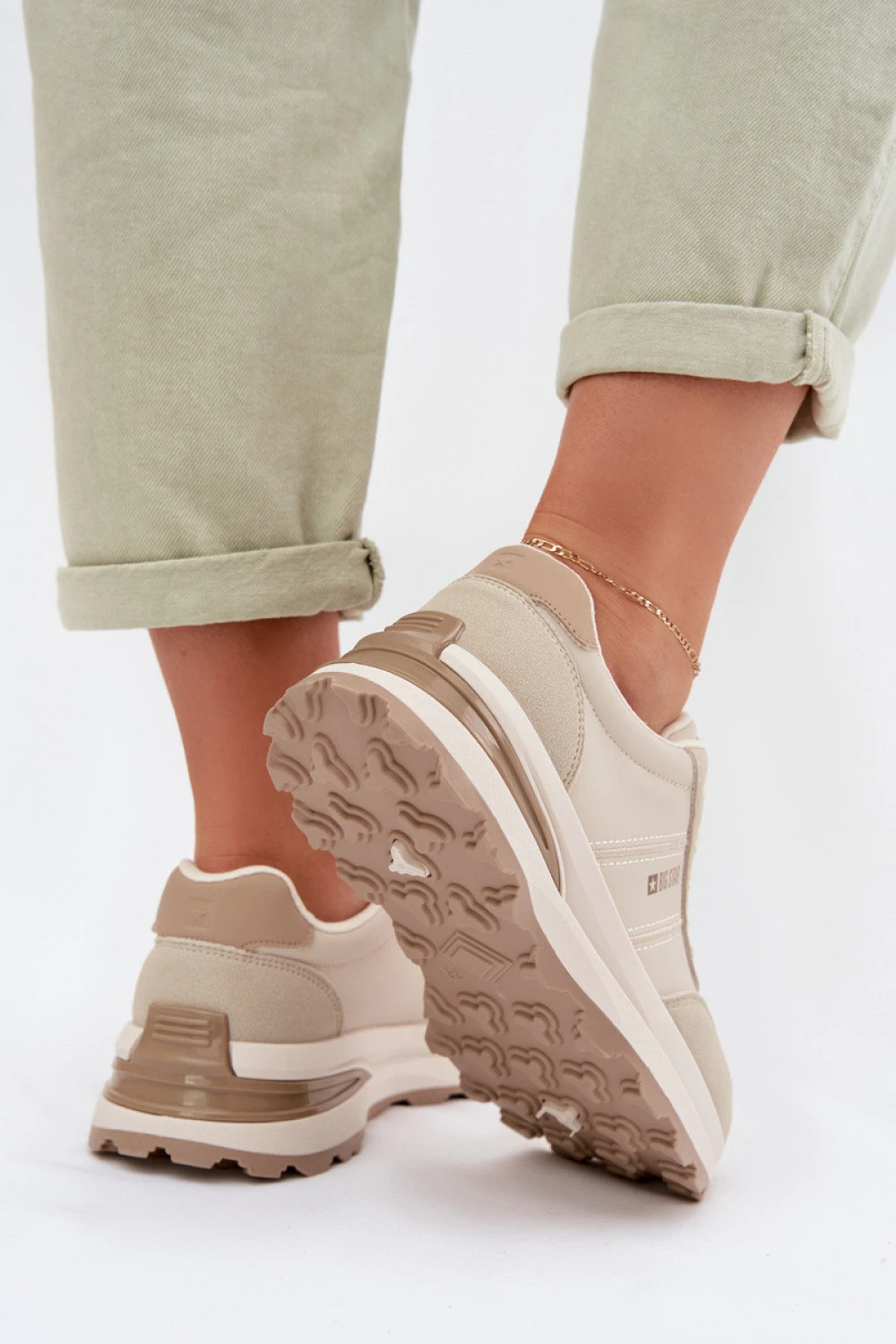 Dámské sportovní boty značky Big Star jsou ideální kombinací stylu a funkčnosti. Vyrobené z ekokože vypadají esteticky a jsou snadno udržovatelné, což je činí skvělou volbou pro každodenní nošení. Model je vybaven inovativní vložkou HI-POLY SYSTEM pocházející z recyklace. Je prodyšná, účinně absorbuje vlhkost a zajišťuje správnou cirkulaci vzduchu. Navíc tlumí nárazy, zvyšujíc pohodlí při chůzi, a její odolnost a odolnost proti opotřebení a deformacím zajišťuje, že si zachovává své vlastnosti po dlouhou dobu. Jedná se o pohodlnou a praktickou obuv, která se skvěle hodí do aktivního každodenního stylu.