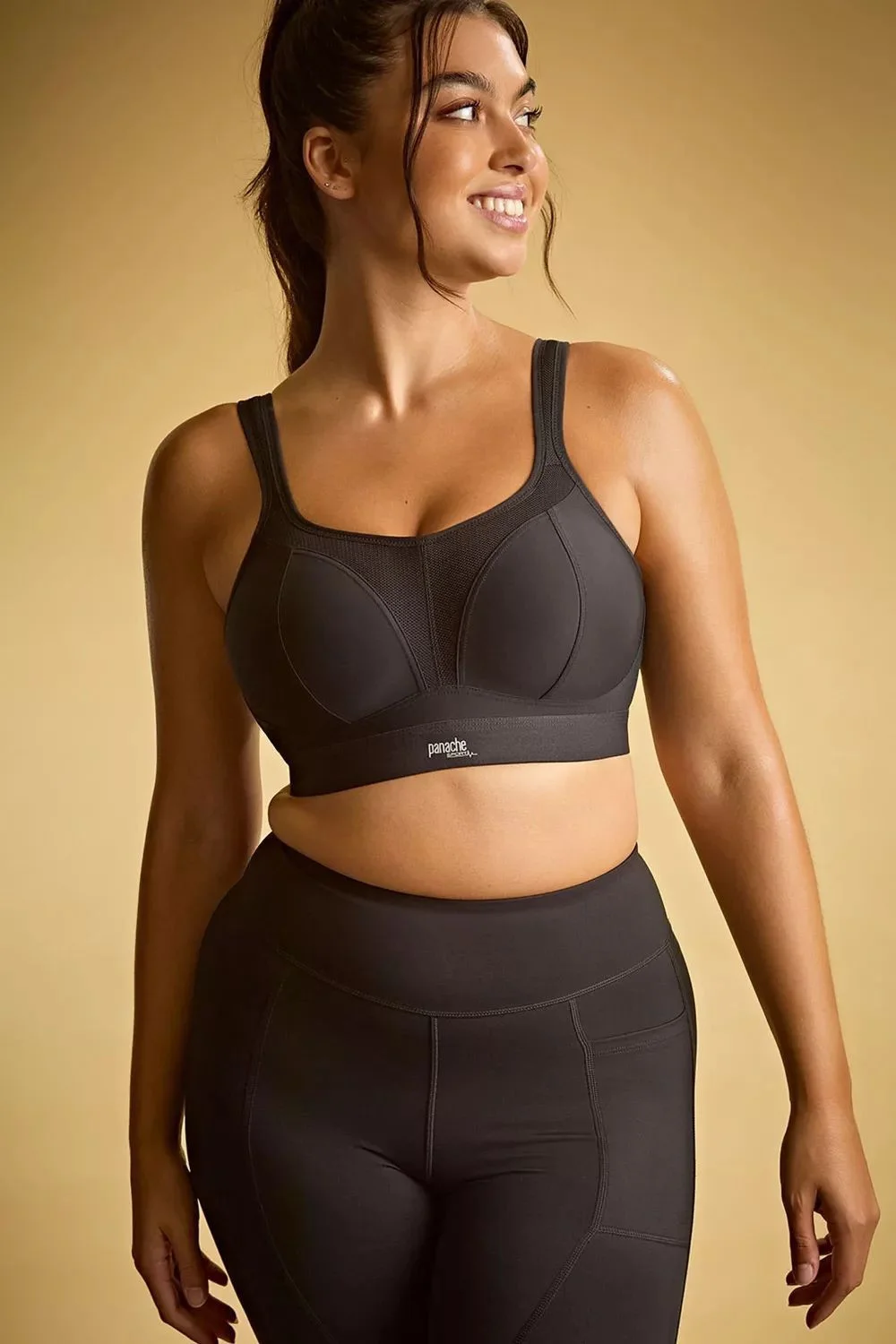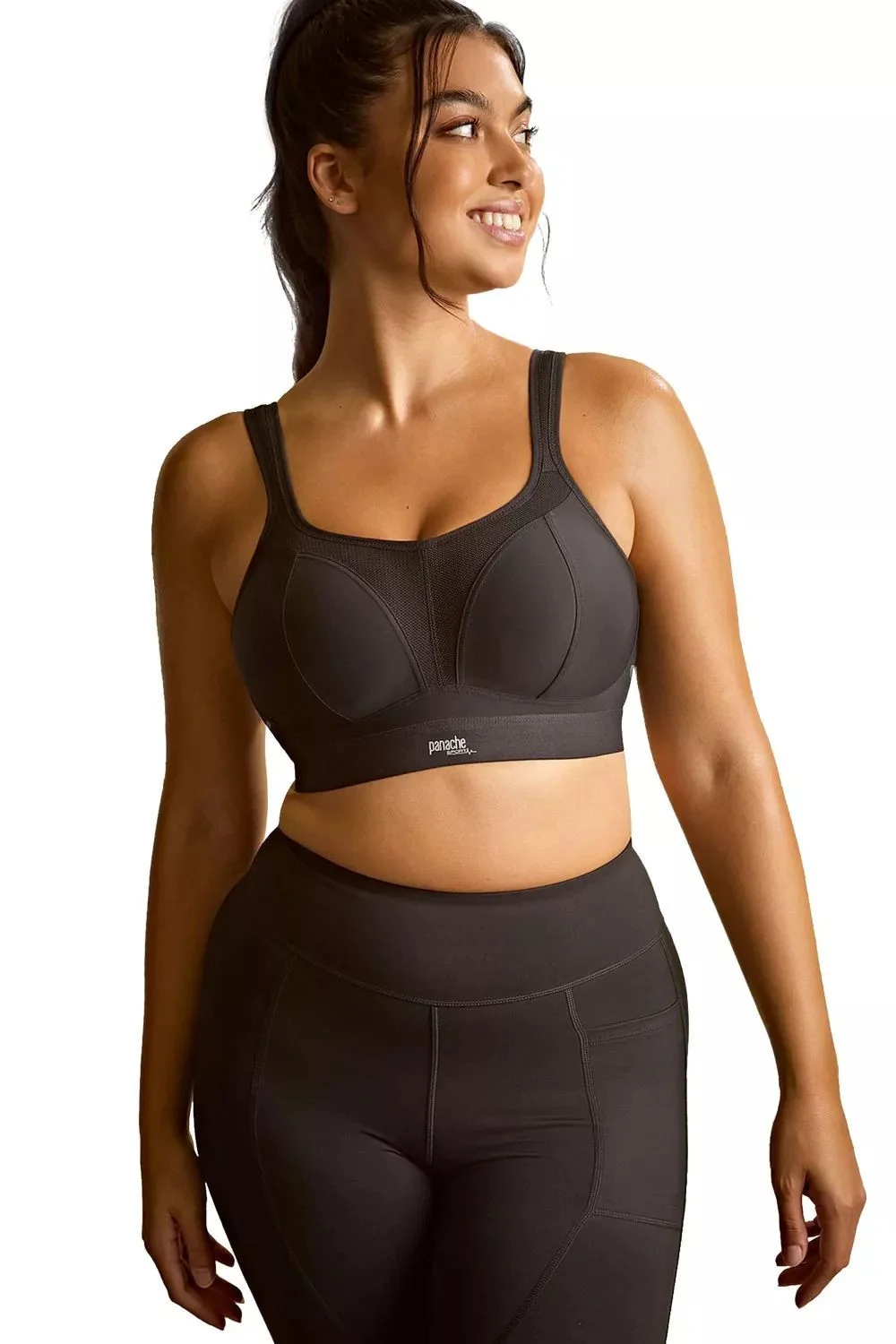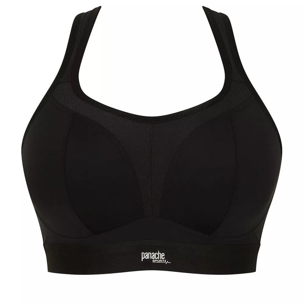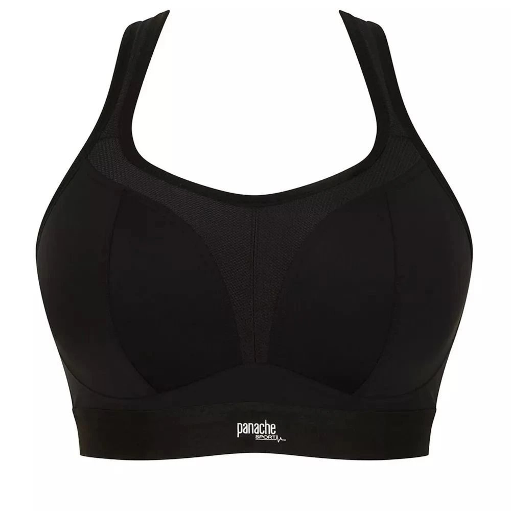 Sportovní podprsenka 7341B Sport black Panache - černá barva - z prodyšného materiálu, který odvádí vlhkost od pokožky - jemně vyztužené tvarované bezešvé košíčky - bez kostic - širší guma poskytuje dokonalejší přilnavost k tělu - funkční síťovina na středu a lemu košíčků příjemně ochlazuje - ramínka jsou nastavitelná a lze je pomocí háčku sepnout do kříže - polstrované zapínání nabízí maximální komfort