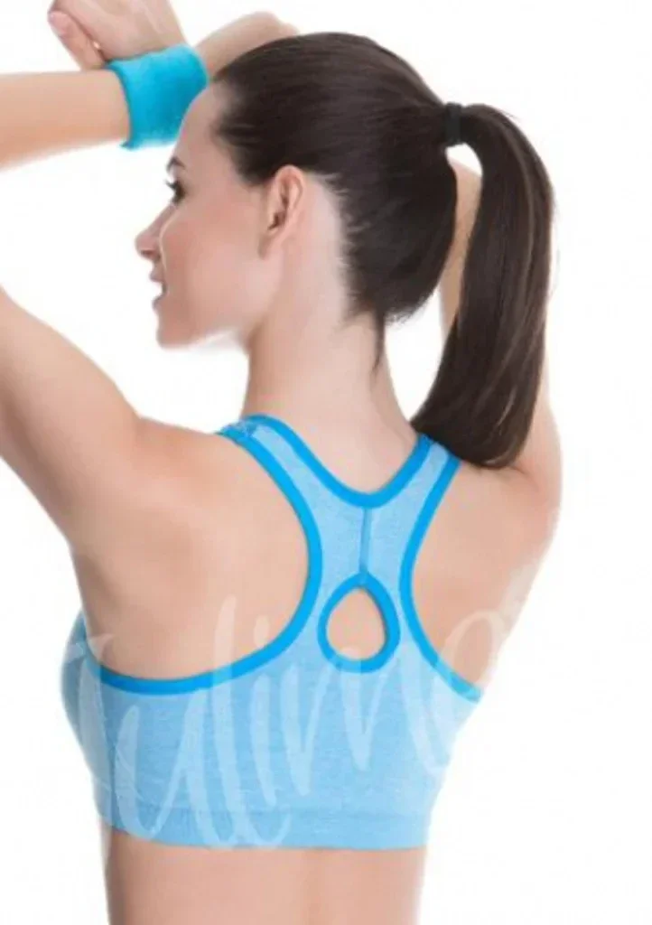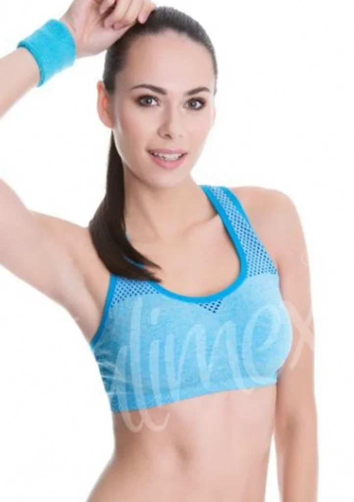 Hladká bezešvá podprsenka bez kostic je ideální pro každý druh sportu. Je vyrobena z jemné polyamidovo-polyestrové příze, která je velmi příjemná na dotek. Má odnímatelné vycpávky v košíčcích, které jsou spojené, aby nedocházelo k jejich přesouvání během fyzické aktivity. Perfektně zvýrazní poprsí. Ramínka jsou zkřížená na zádech.