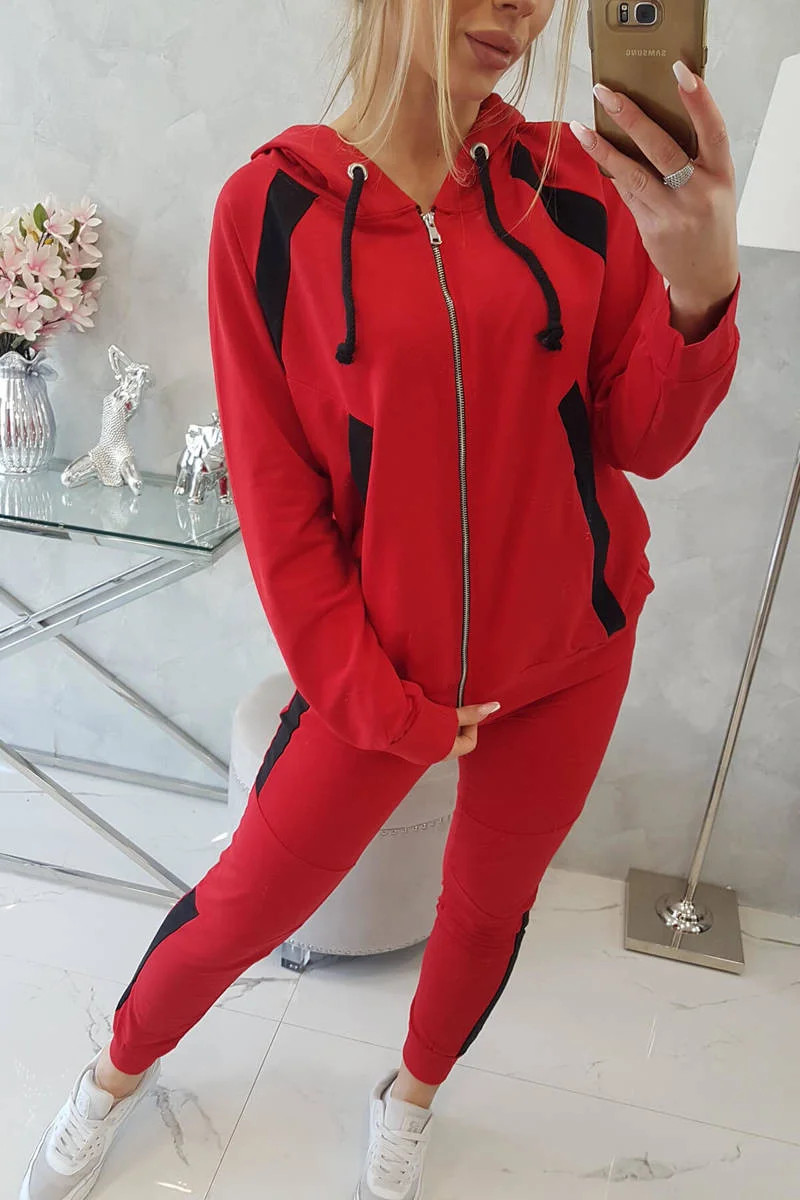 Představujeme vám sadu mikiny a kalhot. Sada je opatřena potrubím. Mikina s kapsami a kapucí. Kalhoty mají kapsy. Sada je vyrobena z vysoce kvalitního materiálu. Velikost je univerzální a vyhovuje dámám, které nosí velikost S, M nebo L.