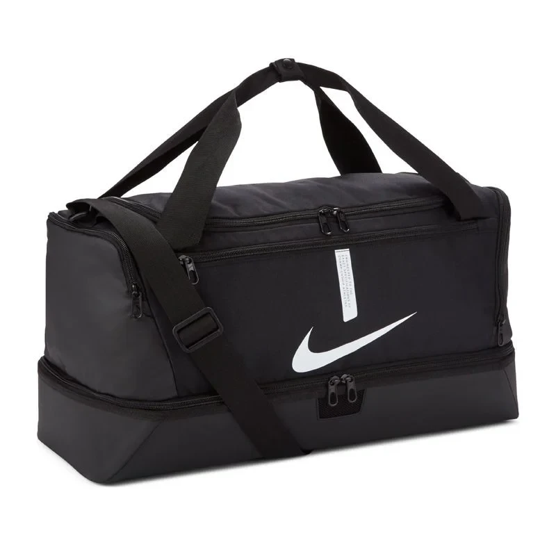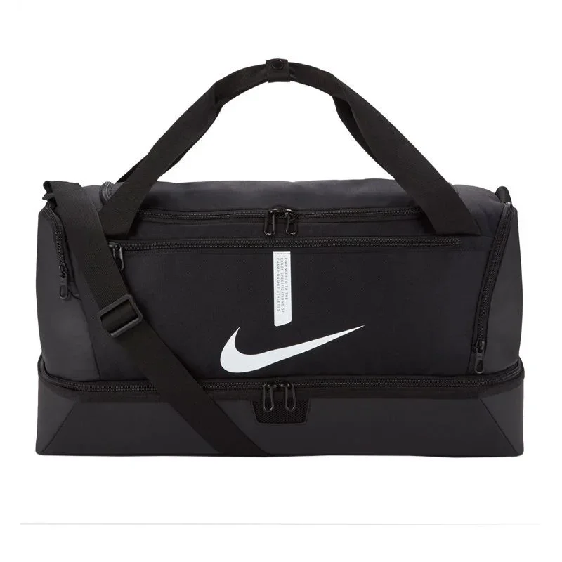 Taška Nike Academy Team Hardcase má odolnou konstrukci, která ti zajistí pořádek. Vyztužené dno dále zajišťuje obsah, zatímco četné přídavné prvky umožňují přenášet fotbalové vybavení různými způsoby.