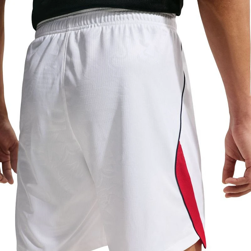 Pánské šortky Nike England Stadium 2025/26 Home white IB4845 100 Pánské fotbalové šortky navržené jako kopie zápasového oblečení anglické reprezentace. Vzdušný materiál. Technologie Dri-FIT odvádí vlhkost. Elastický pas. Přiléhavý střih. Materiál: 100% polyester.