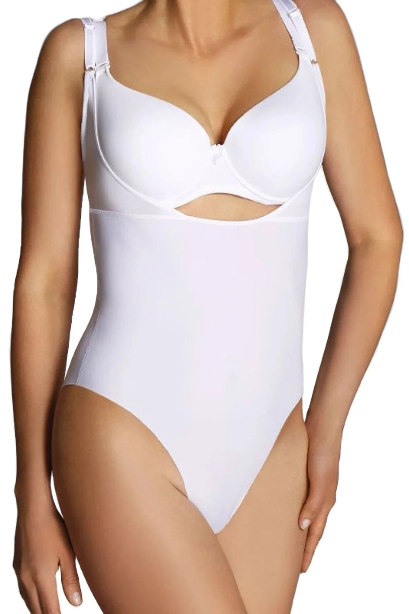 Stahovací body Vincenta white ELDAR - bílá barva - z kvalitního mikrovlákna - tvaruje bříško a hýždě, nezakrývá poprsí - úzká nastavitelná ramínka, v rozkroku zapínání na háčky - kalhotková část bezešvá, střižená laserem - není vidět pod kalhotami nebo šaty přiléhajícími k tělu - poskytuje pohodlí a komfort při nošení