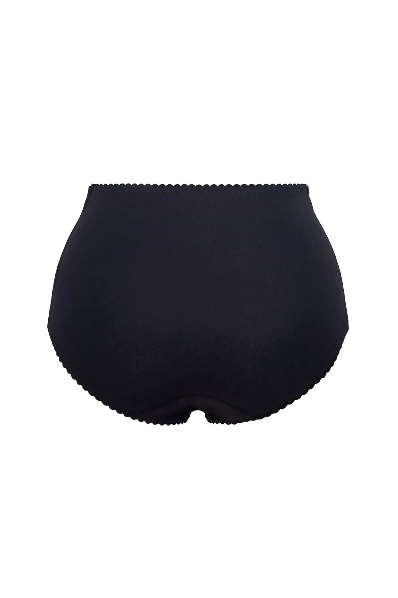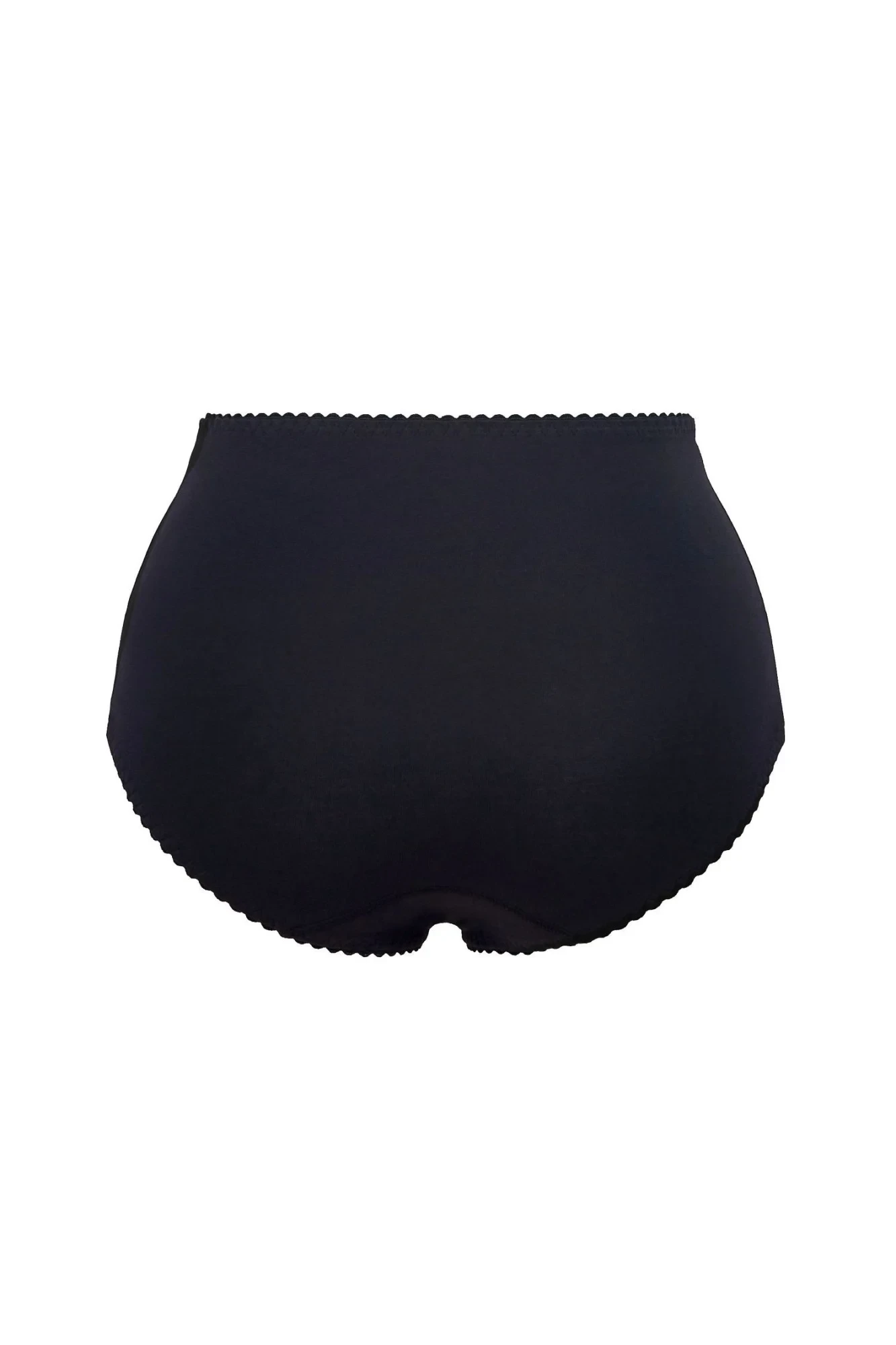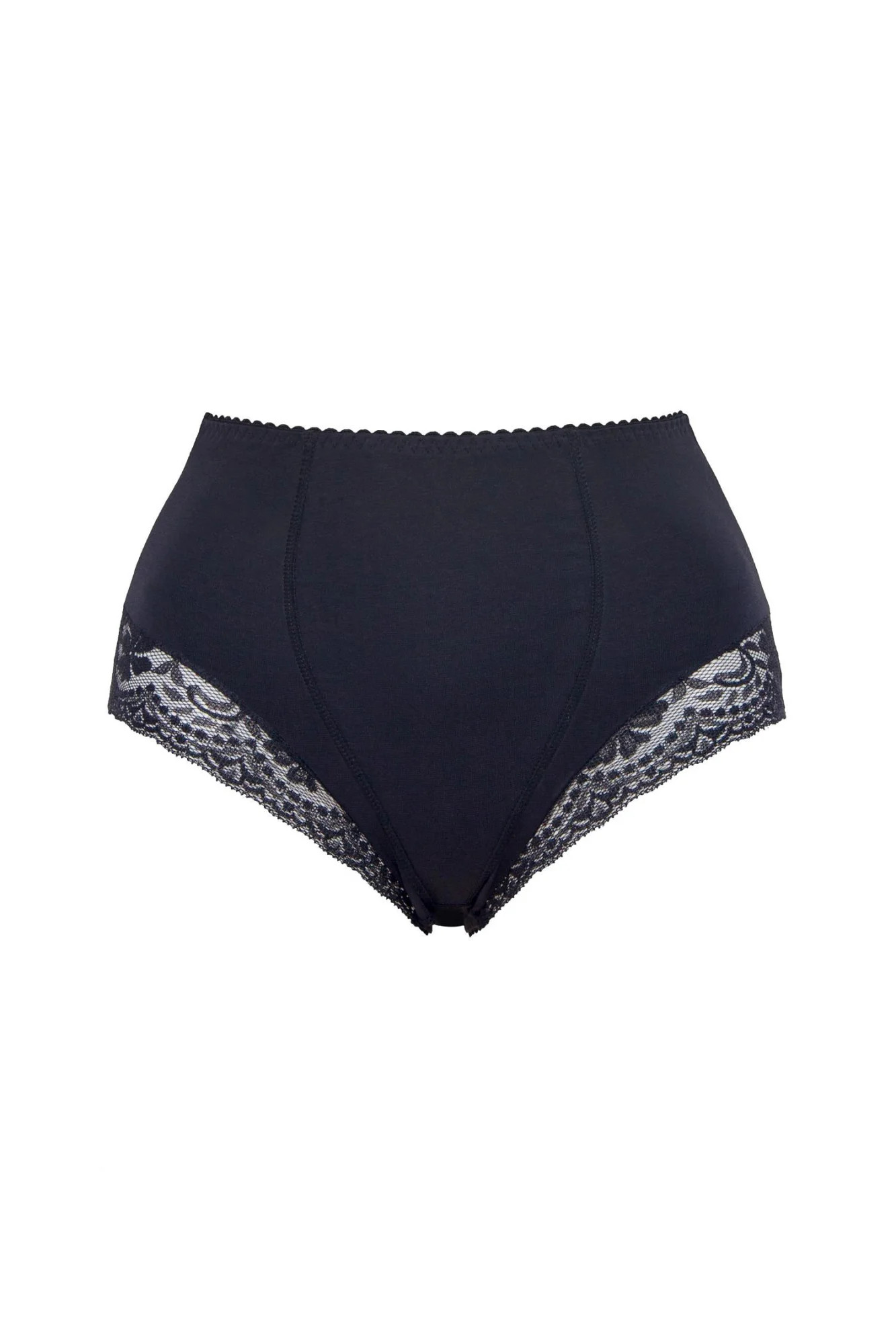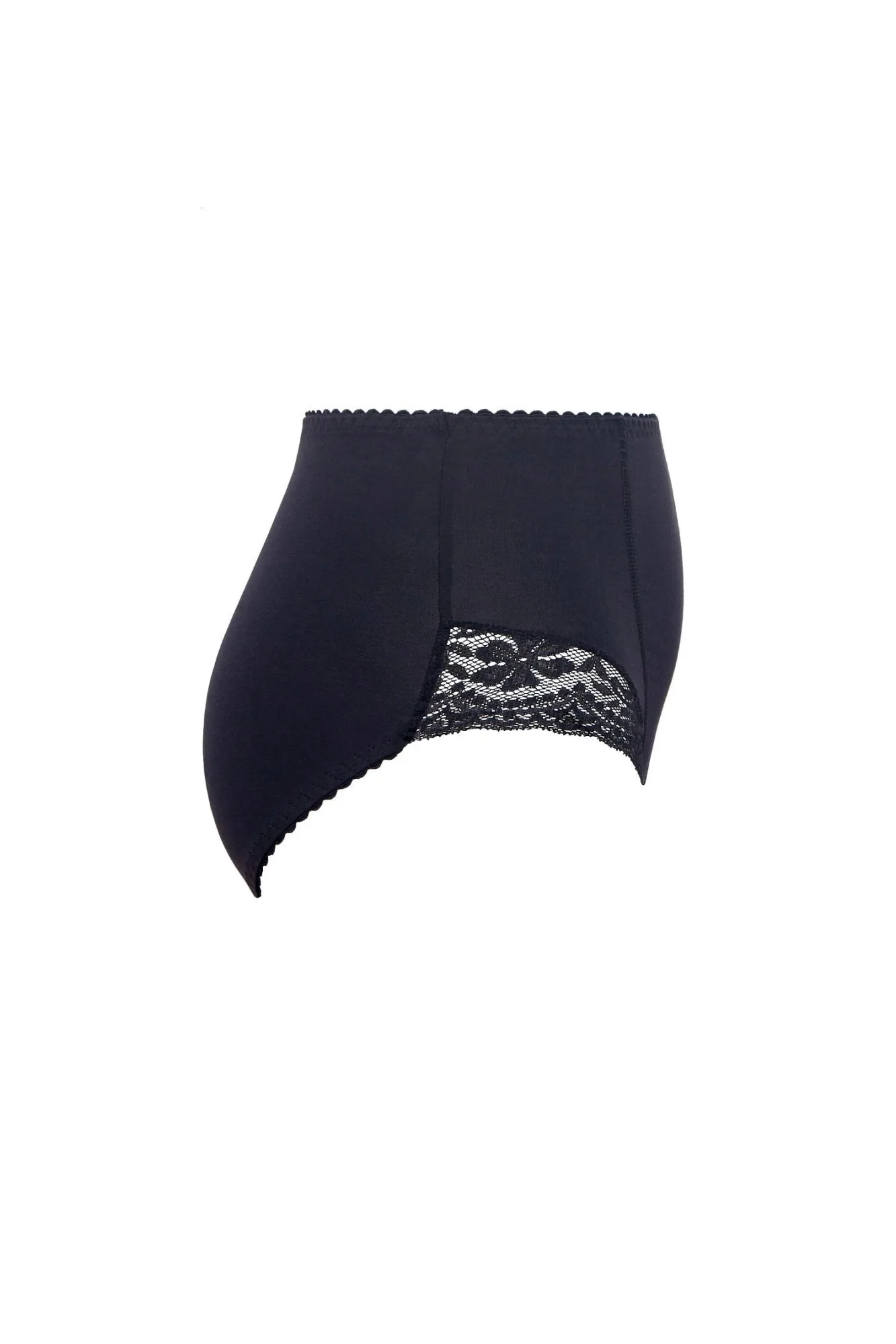 Dámské stahovací kalhotky Ela plus Mitex - černá barva - kalhotky mají lehce zvýšený pas - příjemný, pevný materiál - obepnou oblast boků a část bříška - elegantní design - nohavičky jsou lemované krajkou ve stejné barvě - pod oblečením nejdou vidět