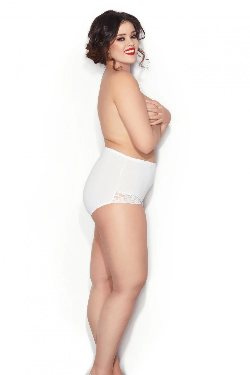 Dámské stahovací kalhotky Ela plus Mitex - bílá barva - kalhotky mají lehce zvýšený pas - příjemný, pevný materiál - obepnou oblast boků a část bříška - elegantní design - nohavičky jsou lemované krajkou ve stejné barvě - pod oblečením nejdou vidětMateriálové složení: 85% polyamid + 15% elastan