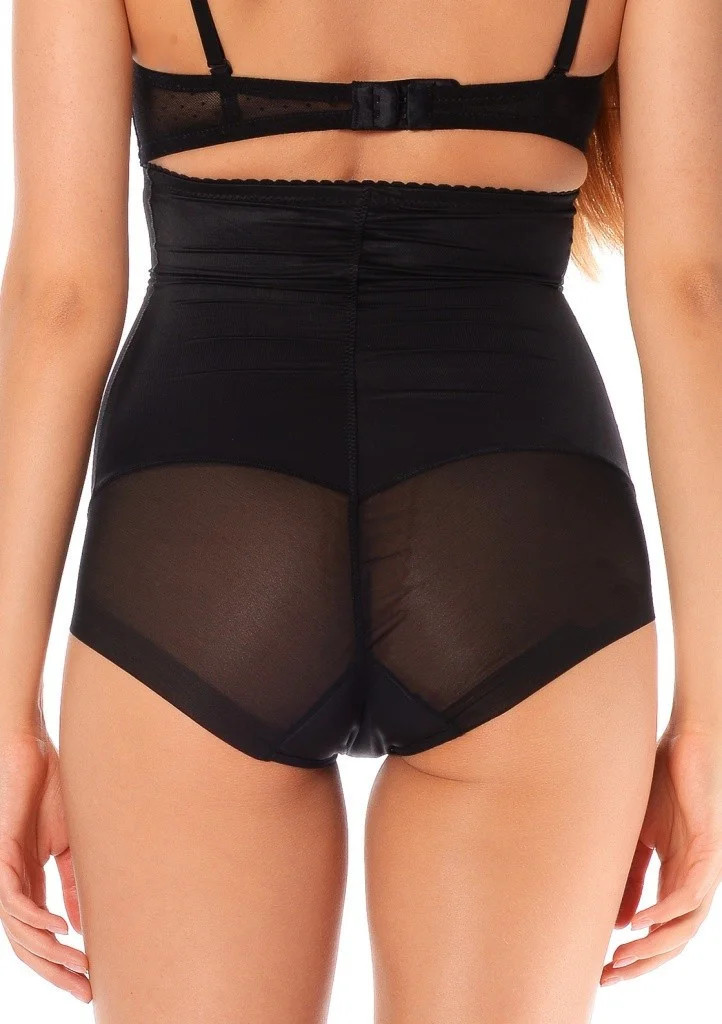 Atraktivní dámské stahovací kalhotky značky Lovelygirl černé nebo jemné tělové barvy. Tyto kalhotky jsou kombinací látky a jemného elastického tylu v zadní části. Přední část je vysoká a celý horní okraj je zdobený okrasnou gumičkou, která je všitá zevnitř a po jejím obvodu je silikonový proužek, který tyto kalhotky bezpečně udrží po celou dobu nošení a Vy se budete cítit sebejistě. Zadní strana kalhotek je prostřižena uprostřed a je jemně nařasena, aby dokonale sedla na Vaše pozadí. Nad zadečkem látka přechází v jemný průsvitný tyl a to dělá tento model atraktivním a neodolatelným kouskem. Zadní okraje nohaviček nejsou prošity, a proto se nezařezávají. Do spodní části kalhotek je vsazen bavlněný klínek pro pohodlné nošení. Tyto kalhotky jsou střiženy tak, aby dokonale zeštíhlovaly vaši postavu. Kalhotky se dokonale hodí pod přiléhavé topy, šaty a velmi je oceníte v plesové sezóně.