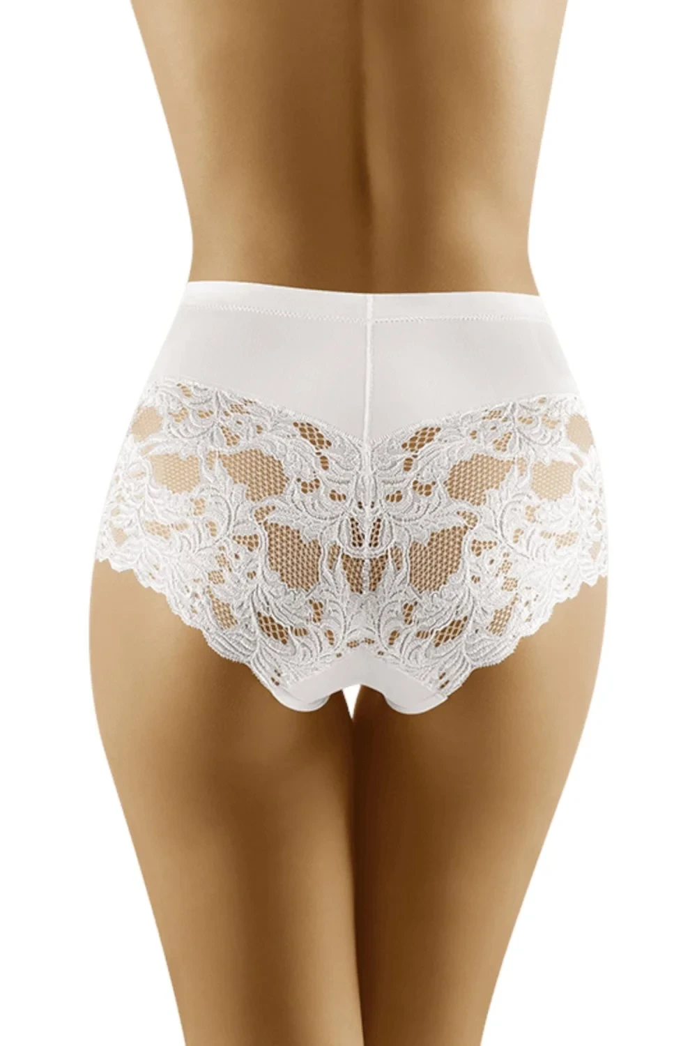 Dámské stahovací kalhotky Slimea Wolbar - vyššího střihu - s plochými švy, díky kterým jsou ideální pod oblečení - na bocích a v zadní části jsou zdobené krajkou s květinovým motivem - velmi silně stahují boky a břichoMateriálové složení: 59% polyamid + 41% elastan