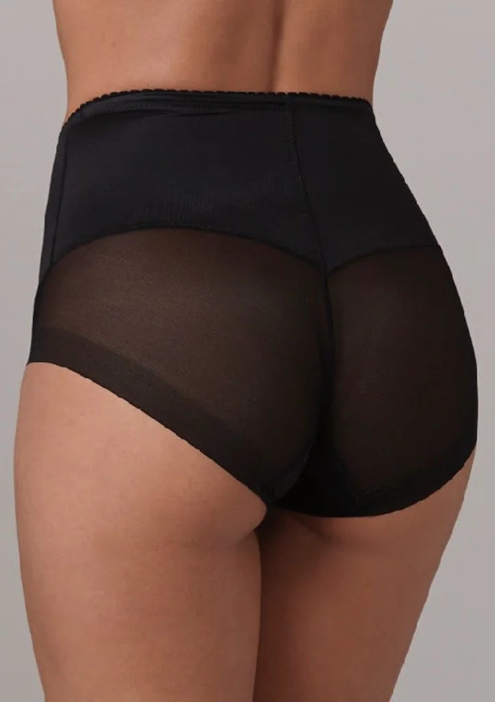 Atraktivní dámské stahovací kalhotky značky Lovelygirl černé nebo jemné tělové barvy. Tyto kalhotky jsou kombinací látky a jemného elastického tylu v zadní části. Přední část dosahuje do výšky pupíku a celý horní okraj je zdobený okrasnou gumičkou, která je všitá zevnitř a po jejím obvodu je silikonový proužek, který tyto kalhotky bezpečně udrží po celou dobu nošení a Vy se budete cítit sebejistě. Zadní strana kalhotek je prostřižena uprostřed a je jemně nařasena, aby dokonale sedla na Vaše pozadí. Nad zadečkem látka přechází v jemný průsvitný tyl a to dělá tento model atraktivním a neodolatelným kouskem. Zadní okraje nohaviček nejsou prošity, a proto se nezařezávají. Do spodní části kalhotek je vsazen bavlněný klínek pro pohodlné nošení. Tyto kalhotky jsou střiženy tak, aby dokonale zeštíhlovaly Vaši postavu. Kalhotky se dokonale hodí pod přiléhavé topy, šaty a velmi je oceníte v plesové sezóně.