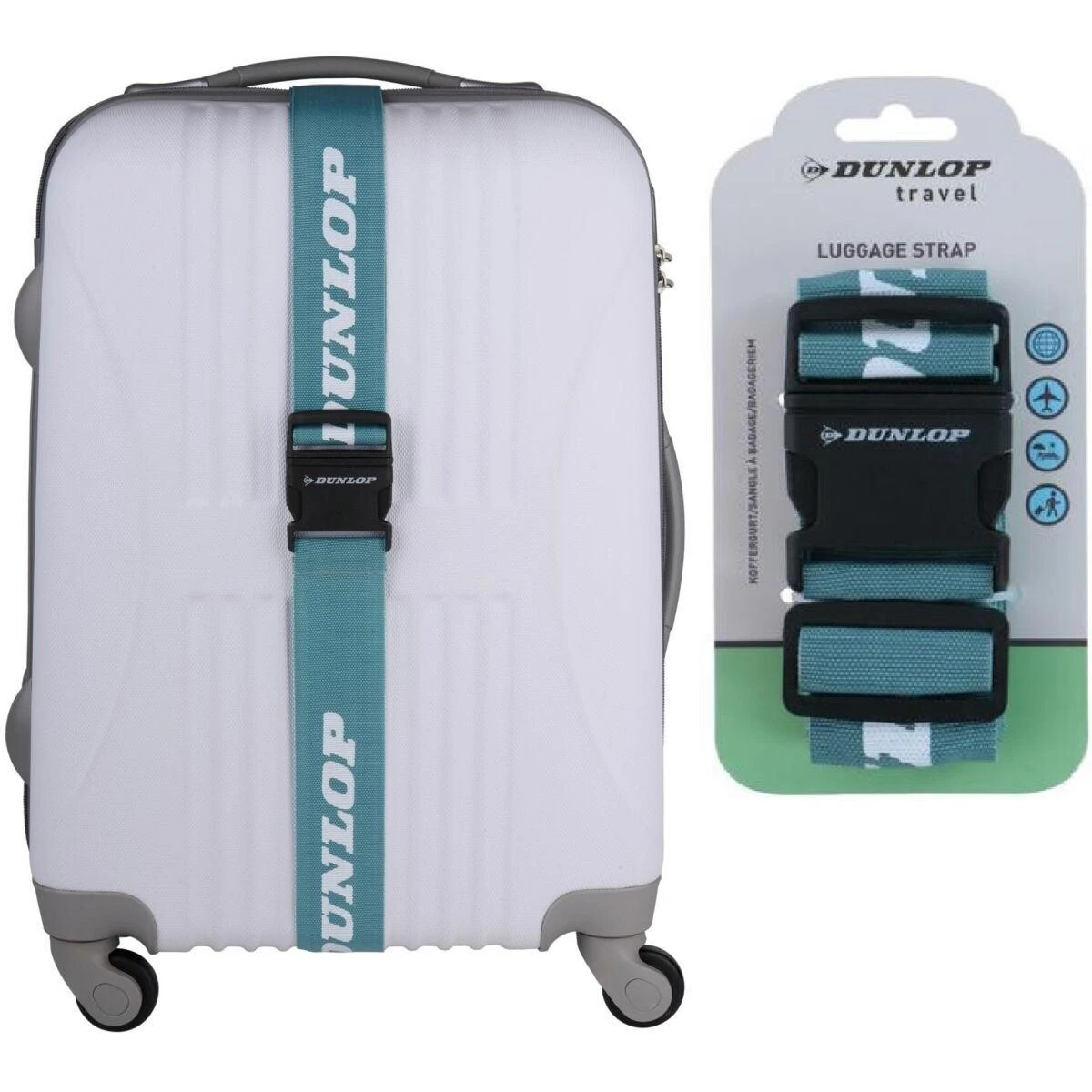Postarejte se o bezpečnost svých věcí během cestování díky Univerzálnímu Zajišťovacímu Popruhu na Kufr DUNLOP.