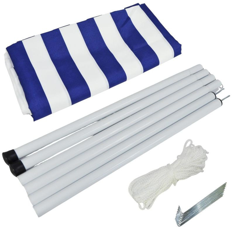 - Materiál: plachta - polyester 140 g/m2, trubky - ocel o průměru 25 mm a 1 mm, lana - plast