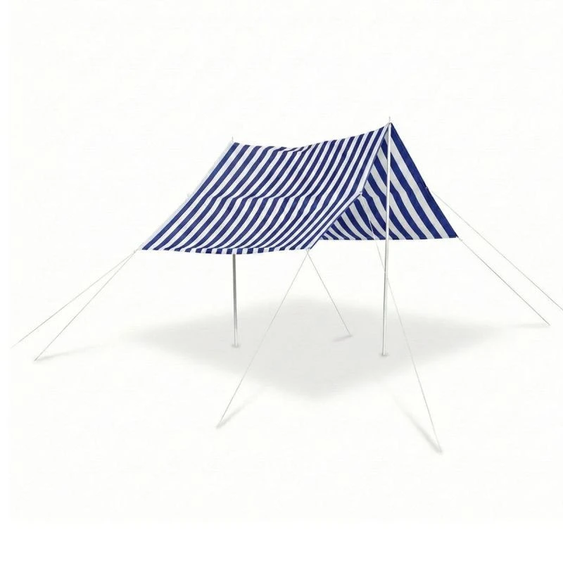 Kovové tyče a napínací lana se slanečky, které jsou součástí stanu, vám umožní postavit plachtu kdekoli a použít ji k jakémukoli účelu.