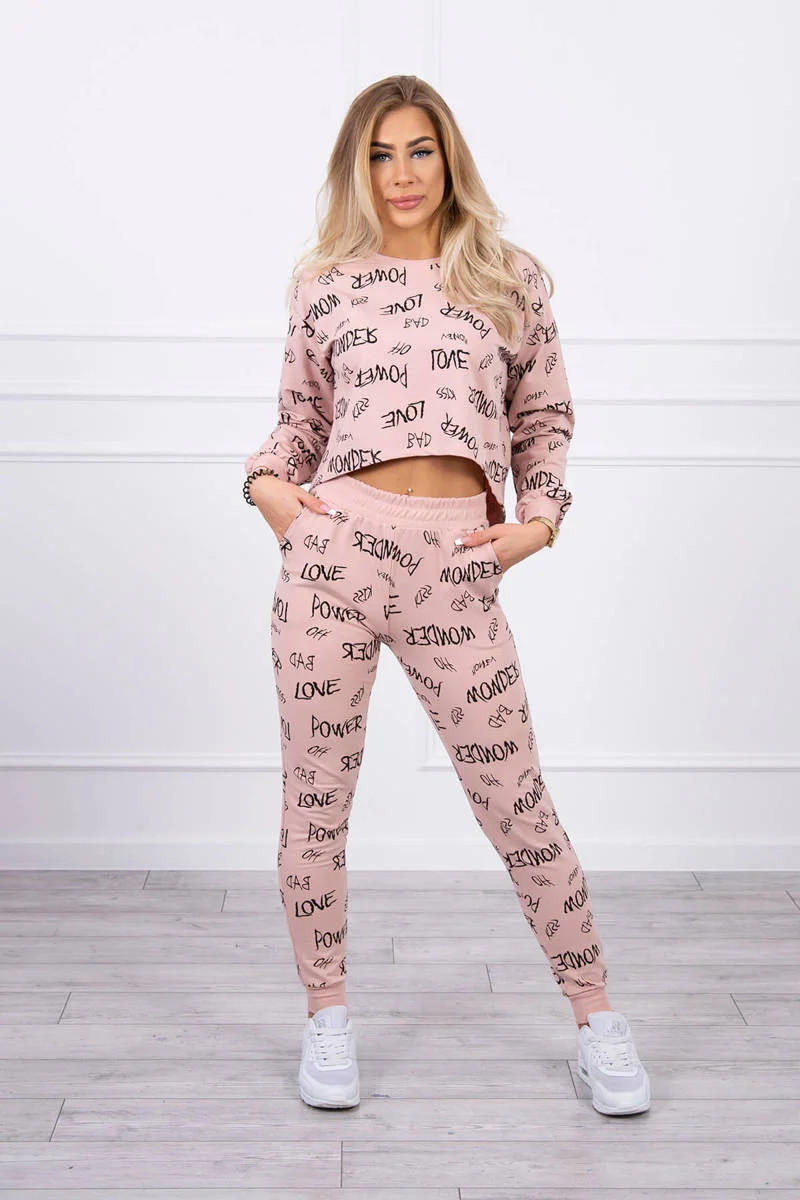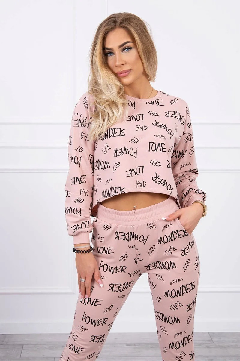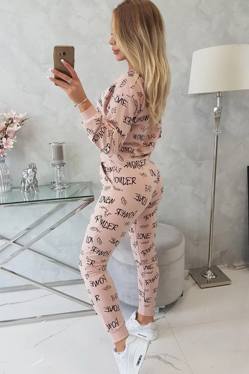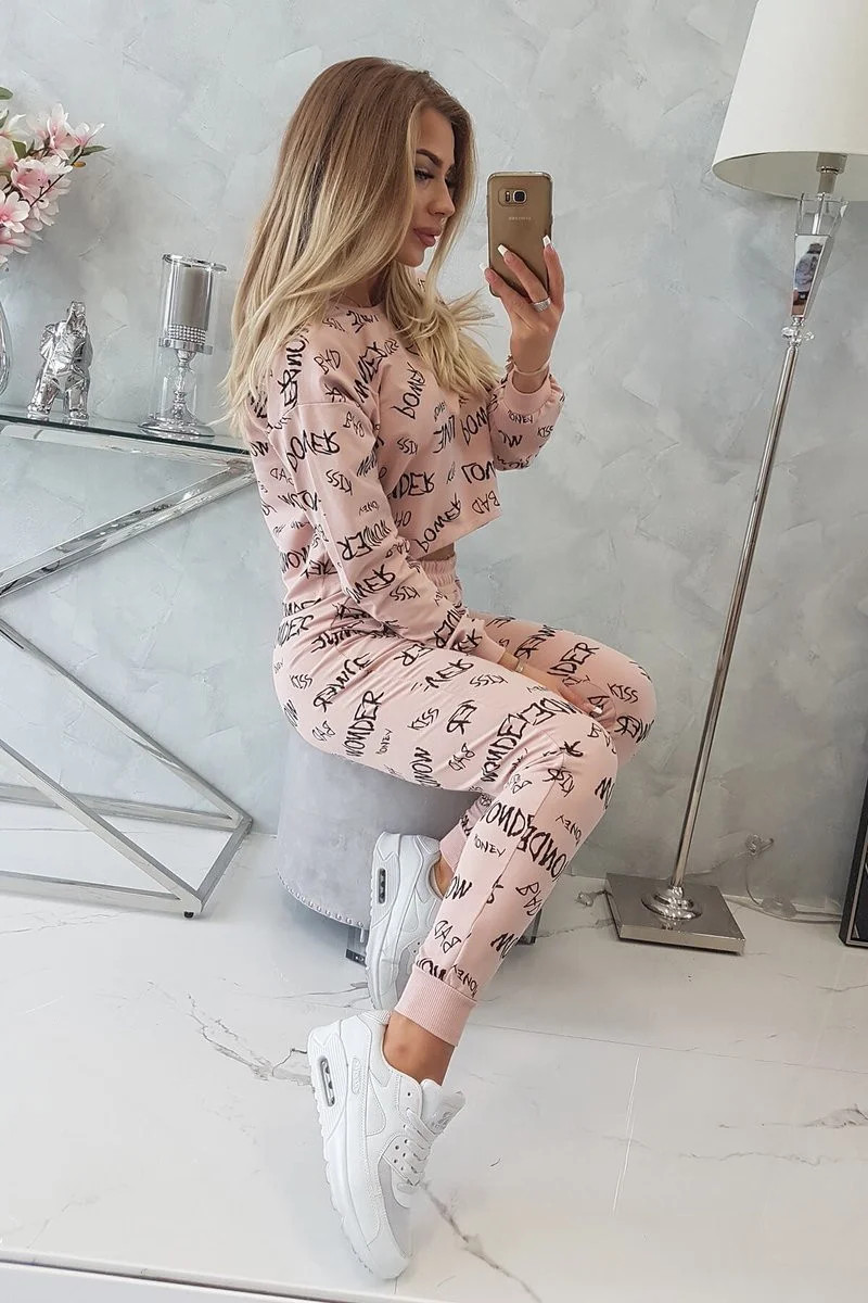 Prezentujemy Państwu komplet bluzki i spodni. Bluzka oraz spodnie z nadrukiem. Komplet wykonany jest z wysokiej jakości materiału. Rozmiar jest uniwersalny i będzie odpowiedni dla Pań w rozmiarze S, M lub L.