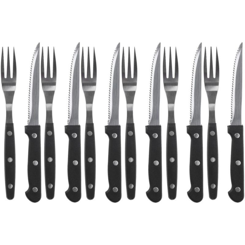 Tato sada příborů pro šest osob se skládá ze 6 nožů a 6 vidliček vyrobených z nerezové oceli s pohodlnými plastovými rukojeťmi.