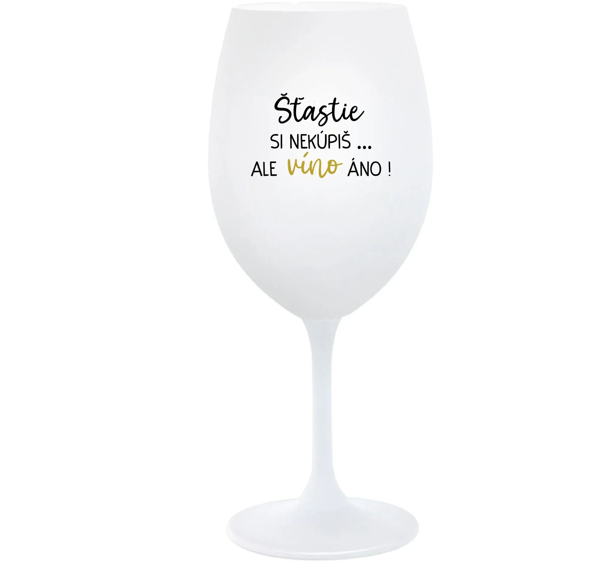 ŠTĚSTÍ SI NEKOUPÍŠ...ALE VÍNO JO! - biely pohár na víno 350 ml