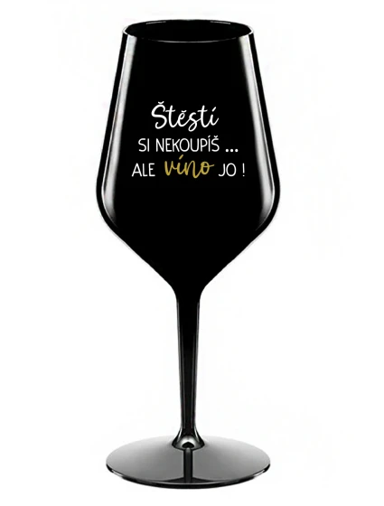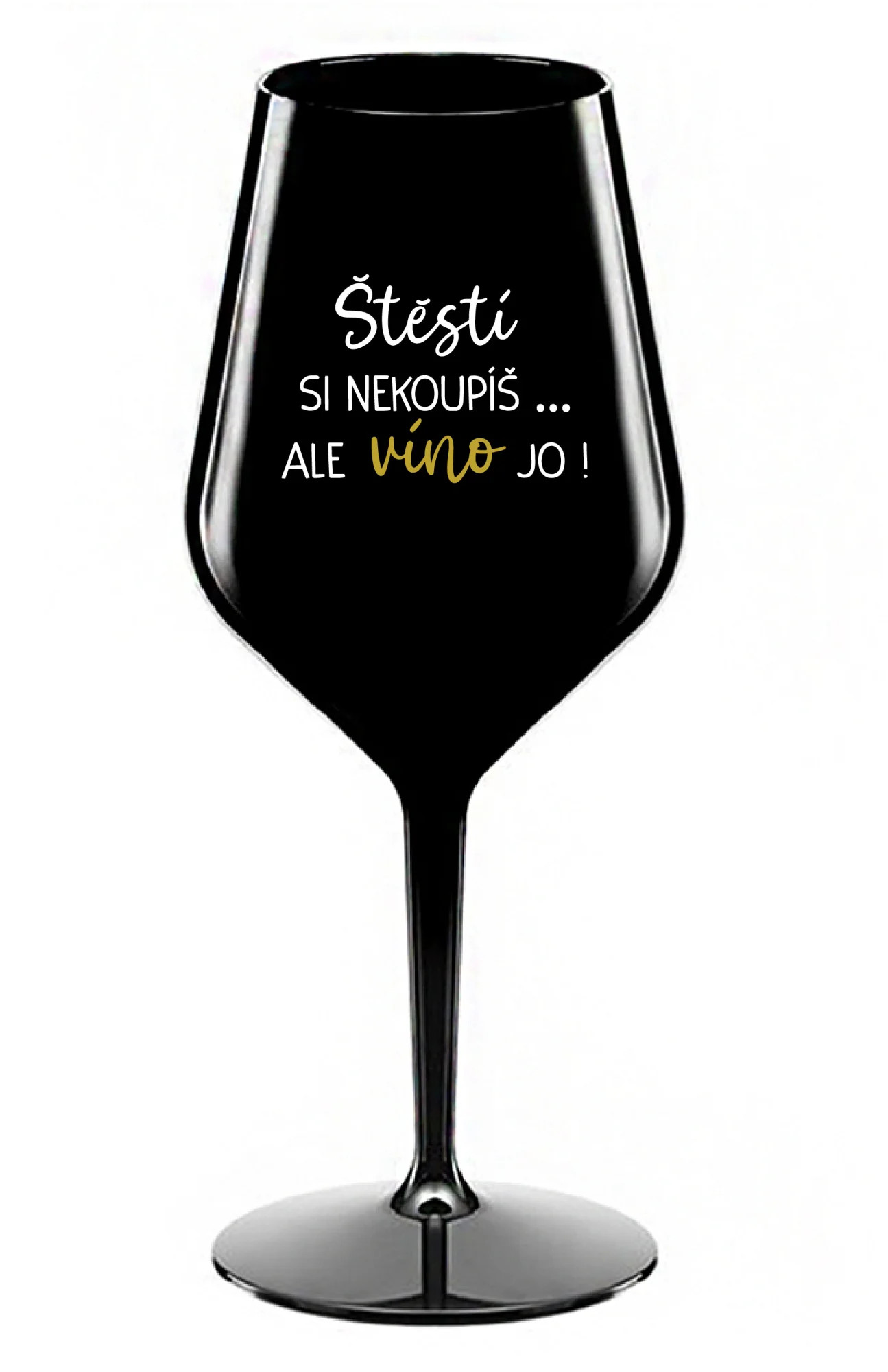 ŠTĚSTÍ SI NEKOUPÍŠ...ALE VÍNO JO! - černá nerozbitná sklenice na víno 470 ml