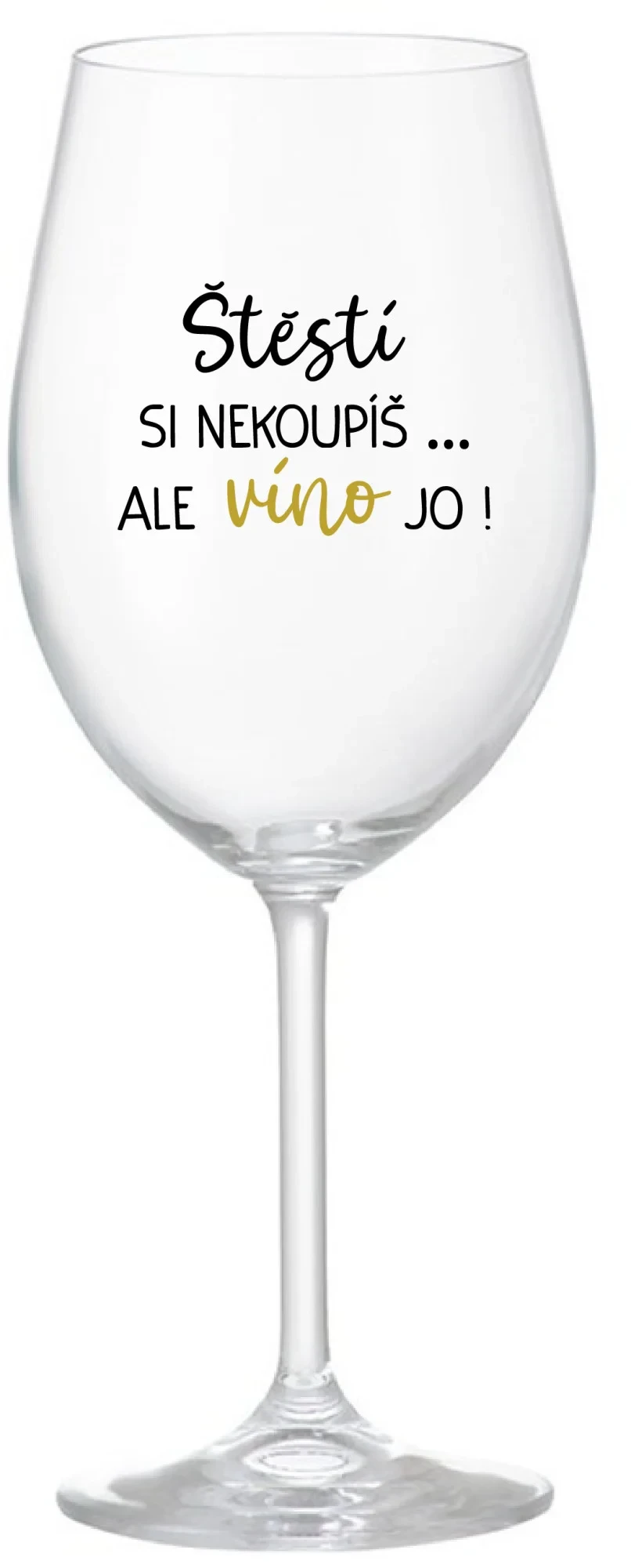 ŠTĚSTÍ SI NEKOUPÍŠ...ALE VÍNO JO! - čirá sklenice na víno 350 ml