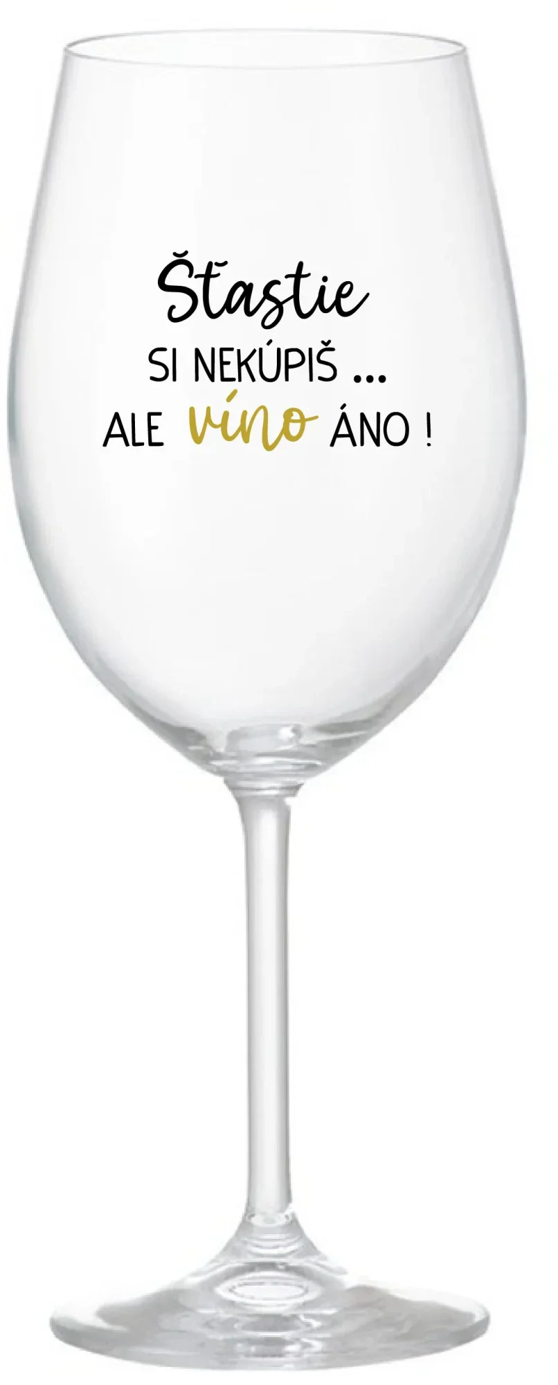 ŠTĚSTÍ SI NEKOUPÍŠ...ALE VÍNO JO! - priehľadný pohár na víno 350 ml