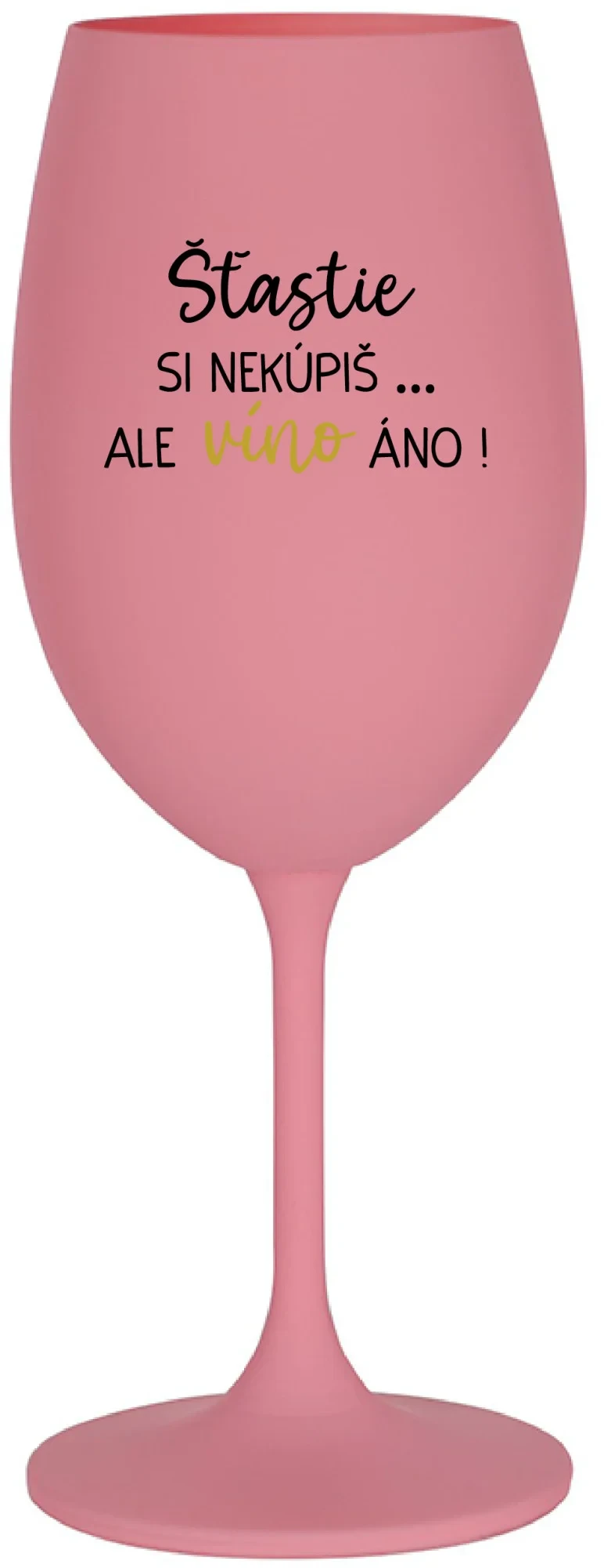 ŠTĚSTÍ SI NEKOUPÍŠ...ALE VÍNO JO! - ružový pohár na víno 350 ml