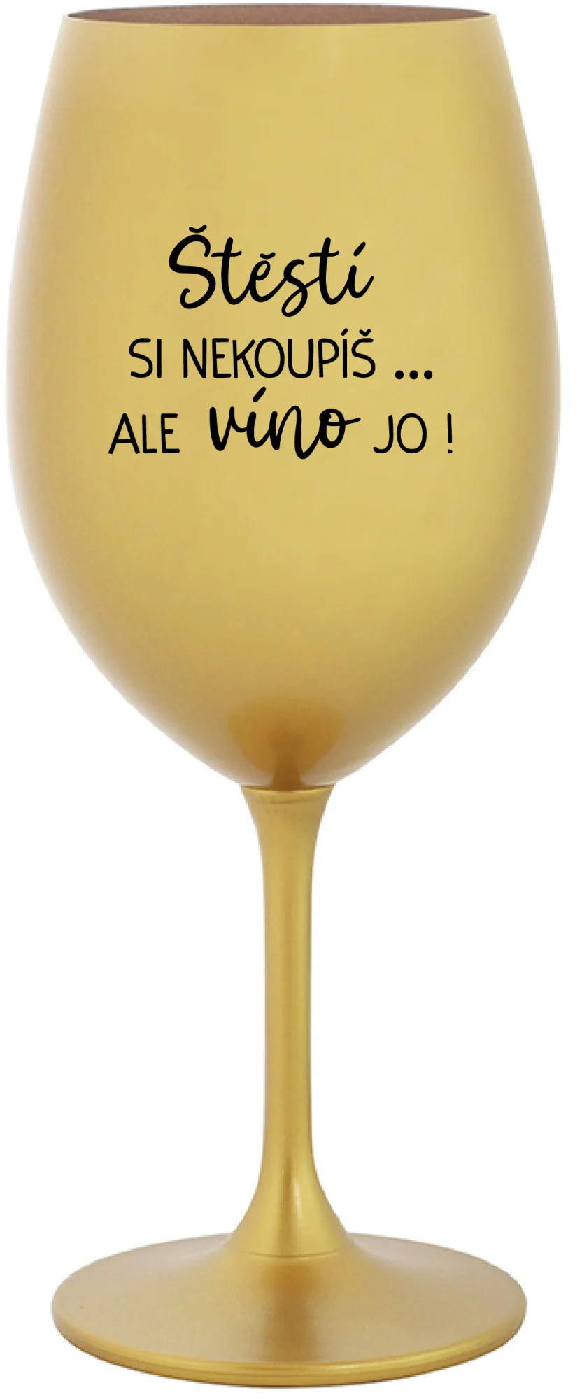 ŠTĚSTÍ SI NEKOUPÍŠ...ALE VÍNO JO! - zlatá sklenice na víno 350 ml