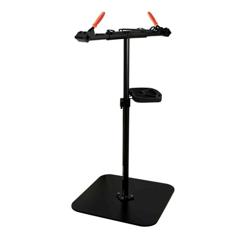 Stojak serwisowy do roweru z podstawą płytową i dwoma szczękami przeznaczony dla serwisów i bardziej wymagających użytkowników