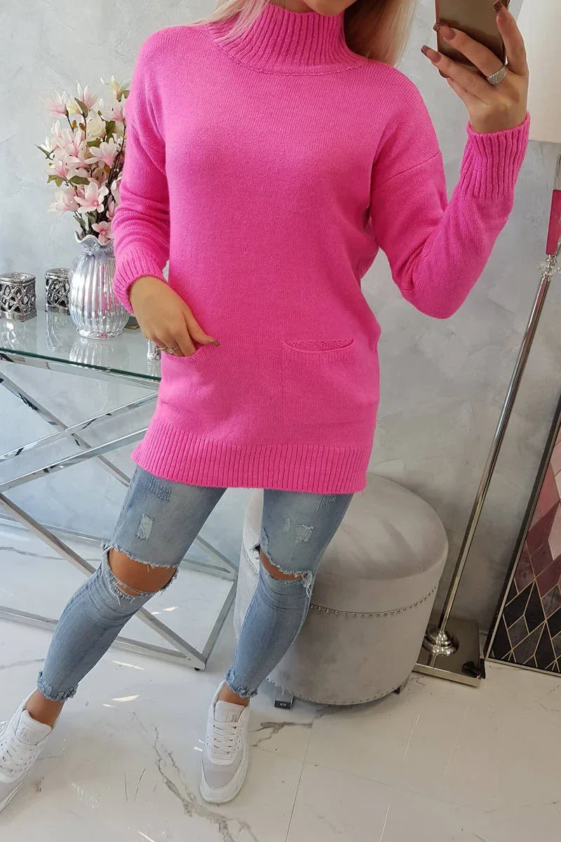 Představujeme vám módní svetr. Svetr má stojatý límec. Dvě kapsy na přední straně. Svetr nošený přes hlavu. Klasický střih ideální pro jakýkoli zimní vzhled. Hřejivé a příjemné na dotek. Svetr je vyroben z vysoce kvalitního materiálu. Velikost je univerzální a vyhovuje dámám ve velikostech M, L, XL.