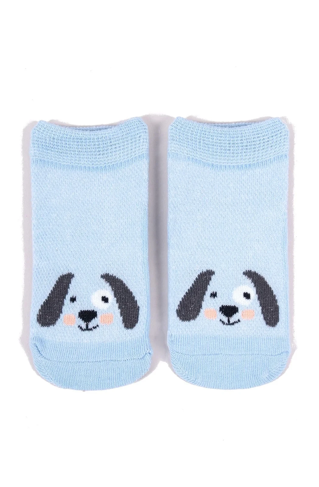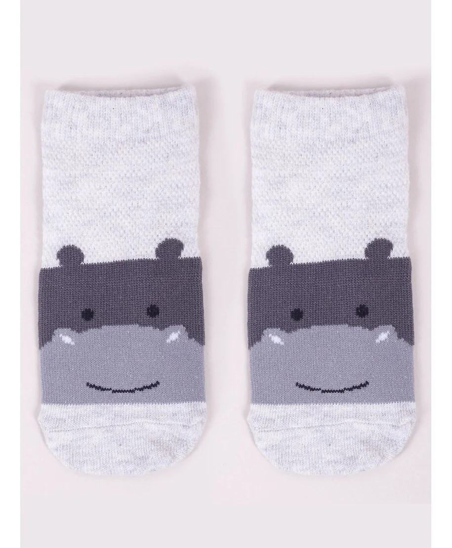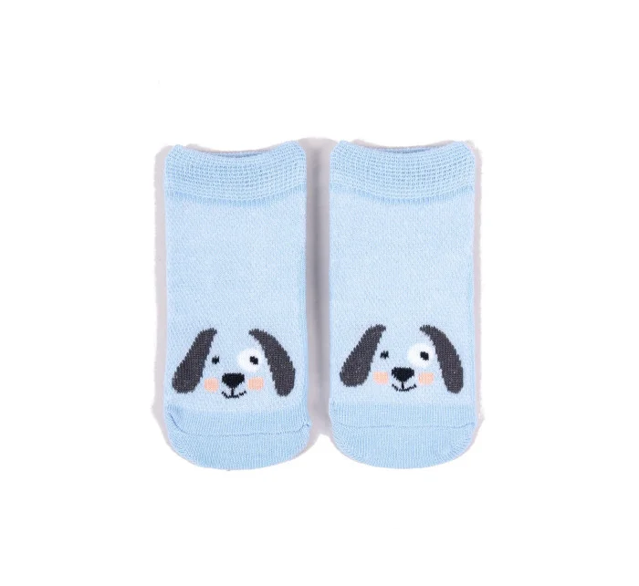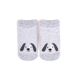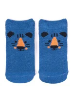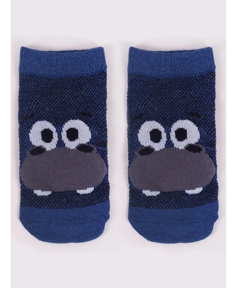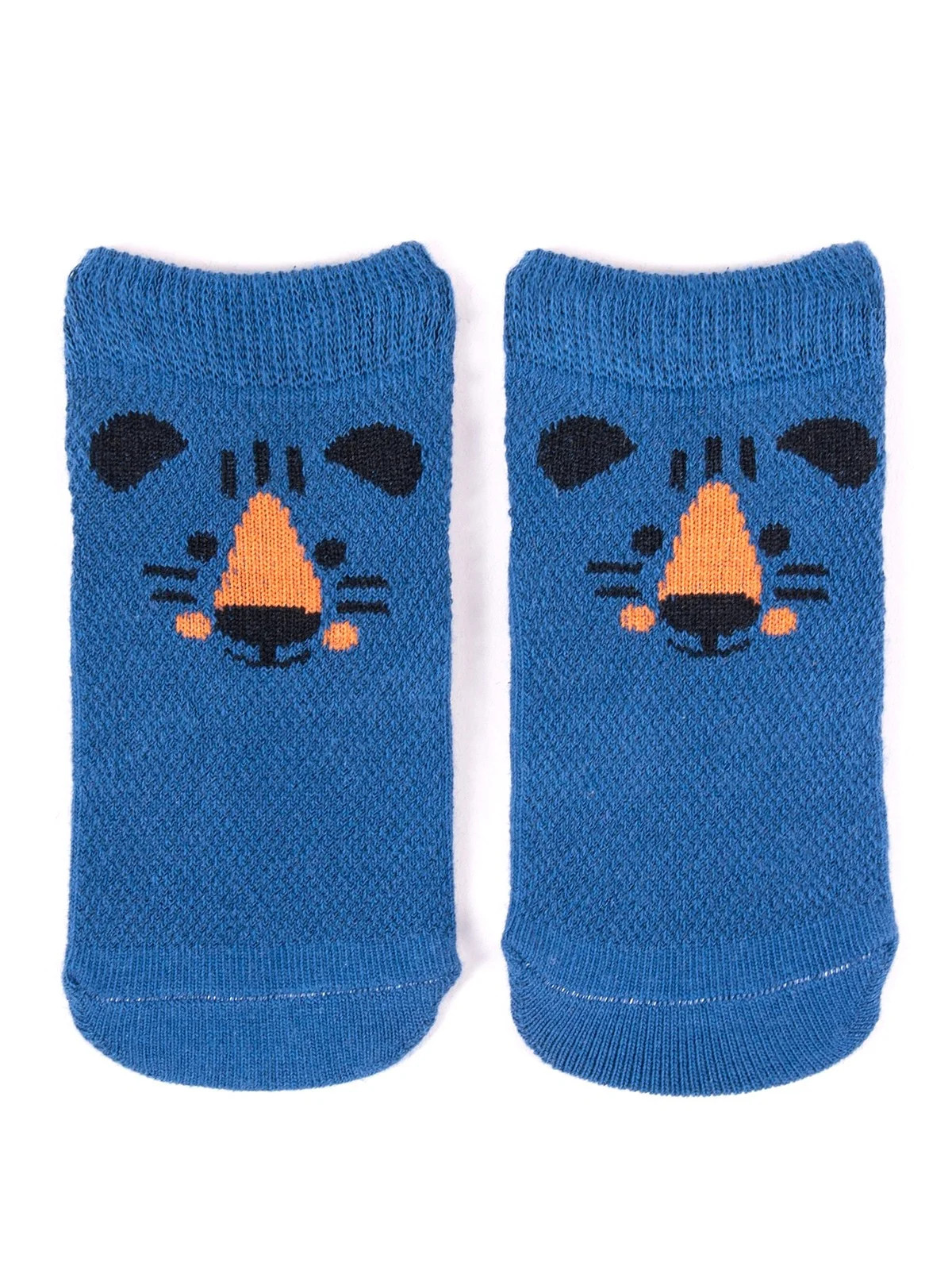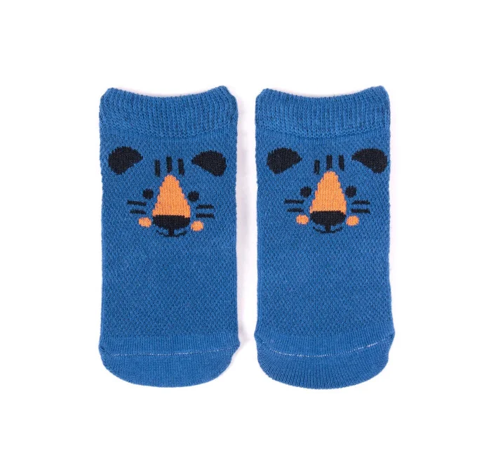 Stopki z wysokiej jakości bawełny, ozdobione buźkami zwierzaków, ściągacz komfortowy. Stopa z silikonowym ABS. Dostępne kolory: (kolor przy palcach): żółty, musztardowy, morski, niebieski, granatowy, jeans.