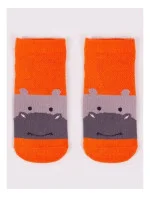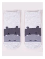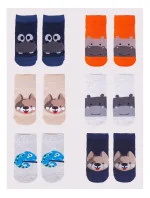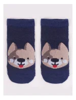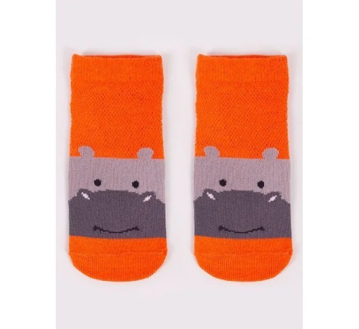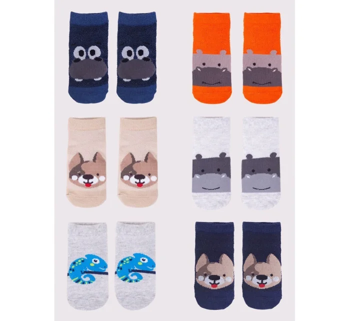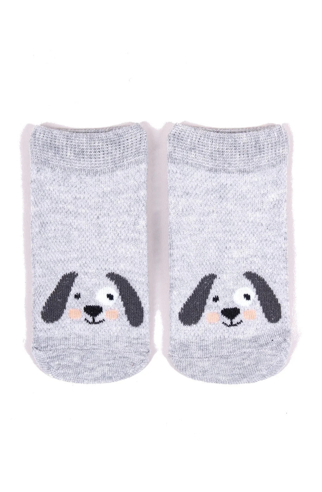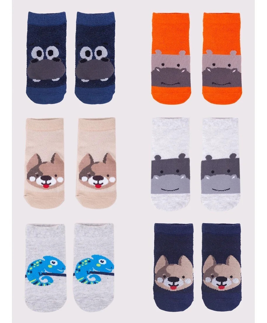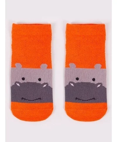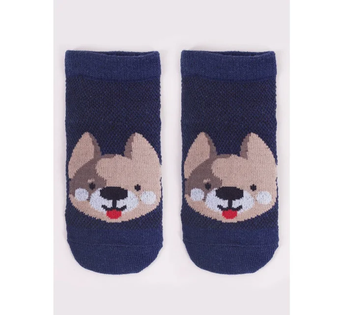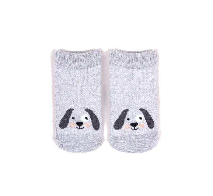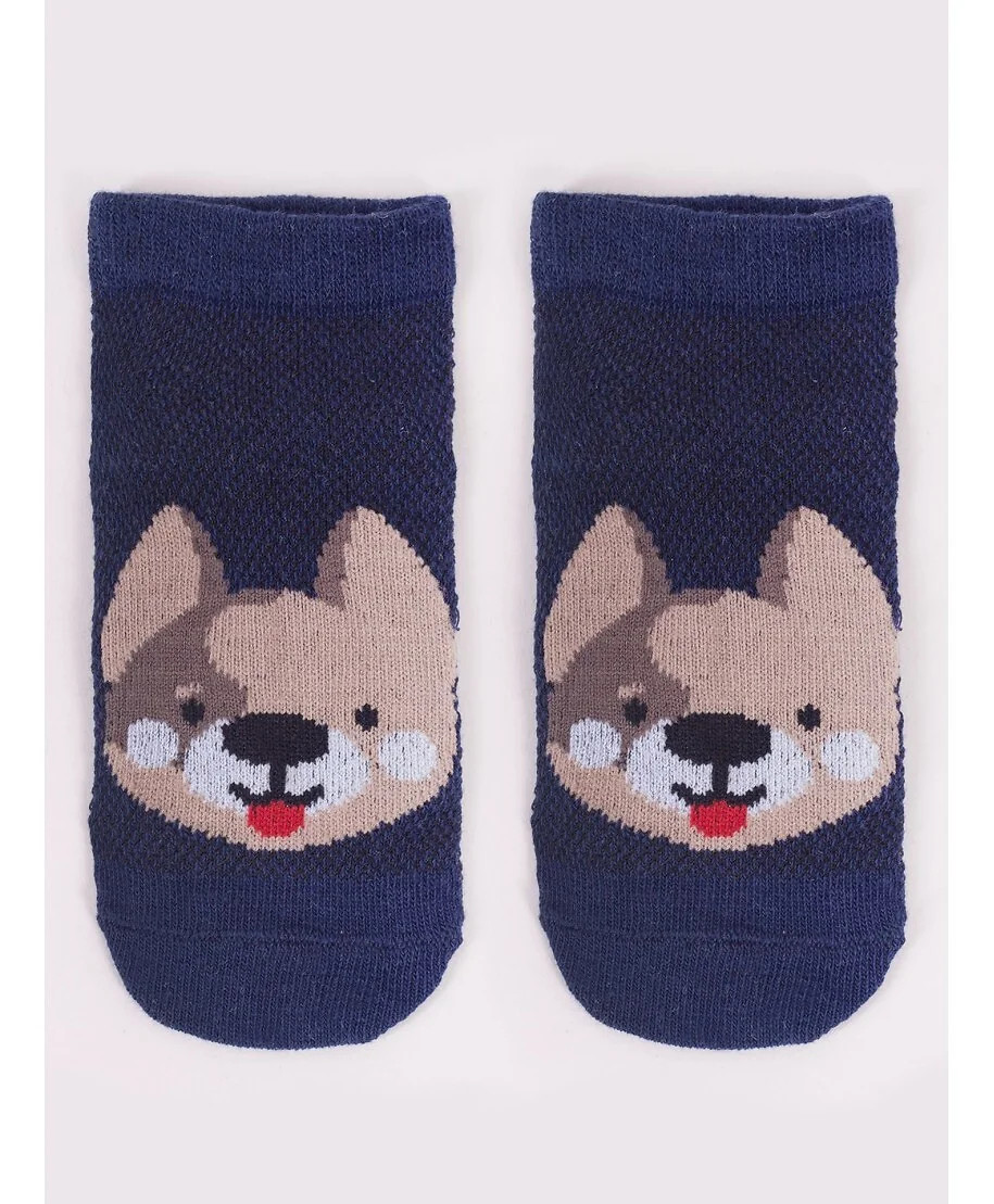 Stopki z wysokiej jakości bawełny, ozdobione buźkami zwierzaków, ściągacz komfortowy. Stopa z silikonowym ABS. Dostępne kolory: (kolor przy palcach): żółty, musztardowy, morski, niebieski, granatowy, jeans.