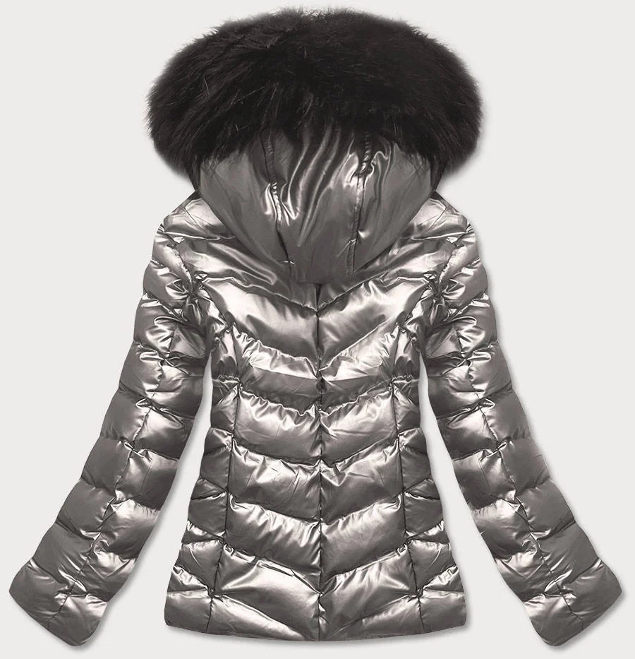 Stříbrná lesklá dámská zimní bunda s kapucí (5m773-401)