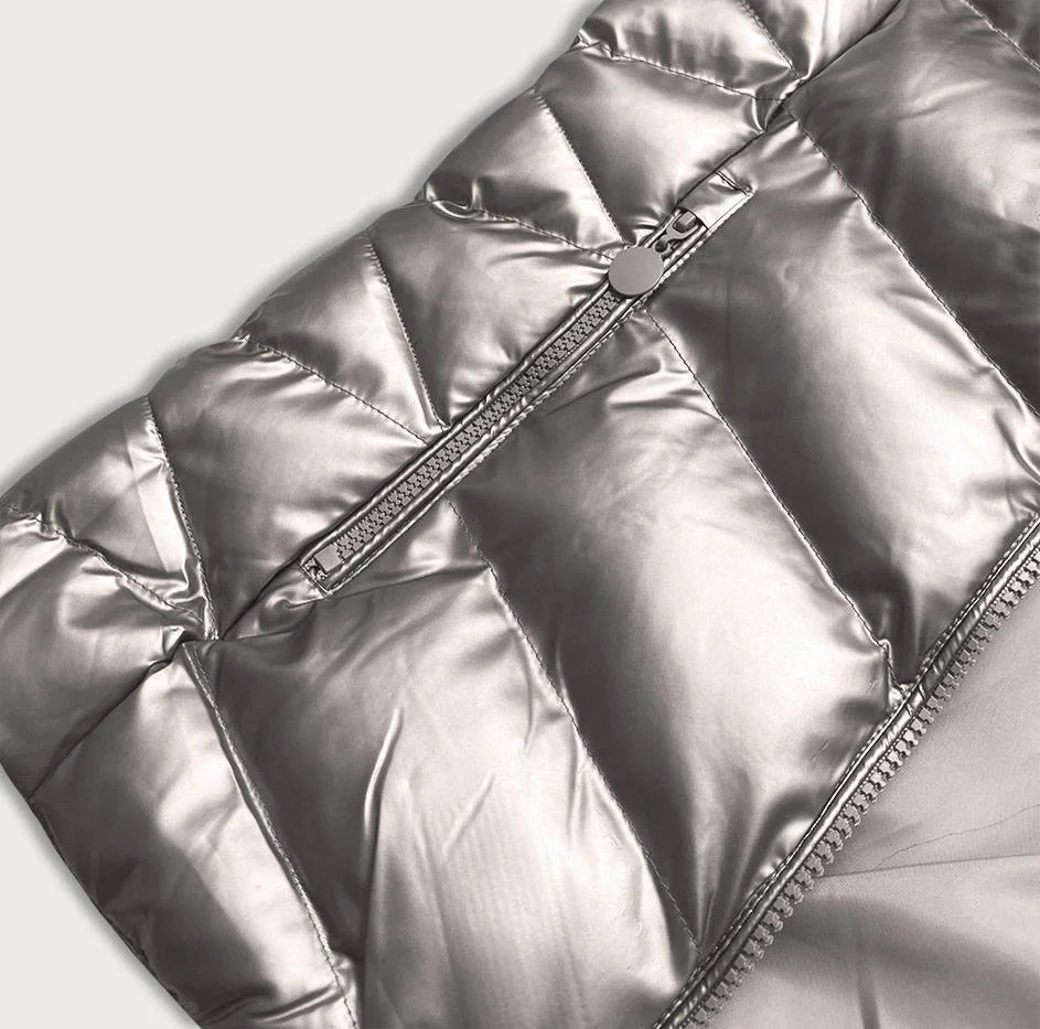 Přidání recenze k Stříbrná lesklá dámská zimní bunda s kapucí (5m773-401)