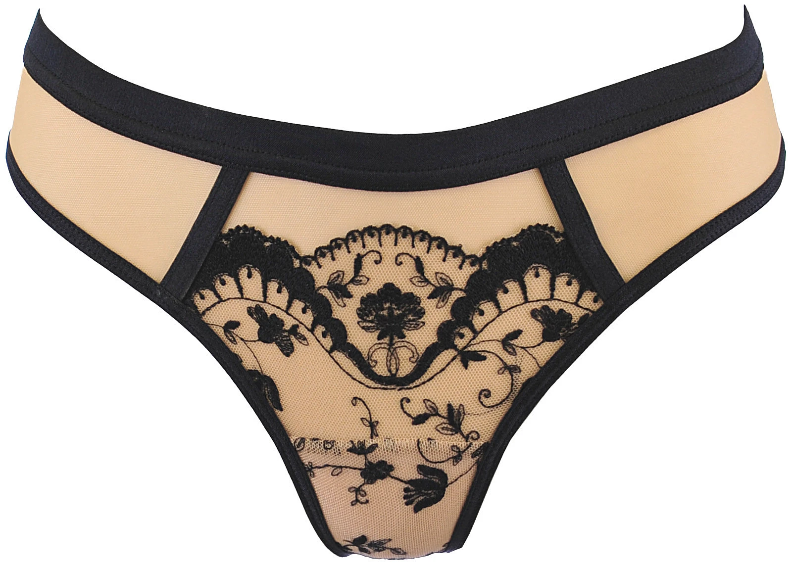 Elegantní kalhotky V-11898 jsou dokonalým doplňkem soupravy a jsou navrženy pro pohodlí i smyslný vzhled. Jsou vyrobeny ze stejné nápadné výšivky se zajímavým květinovým vzorem a měkkého béžového tylu, jemně zvýrazňují siluetu a dodávají celému kompletu lehkost.