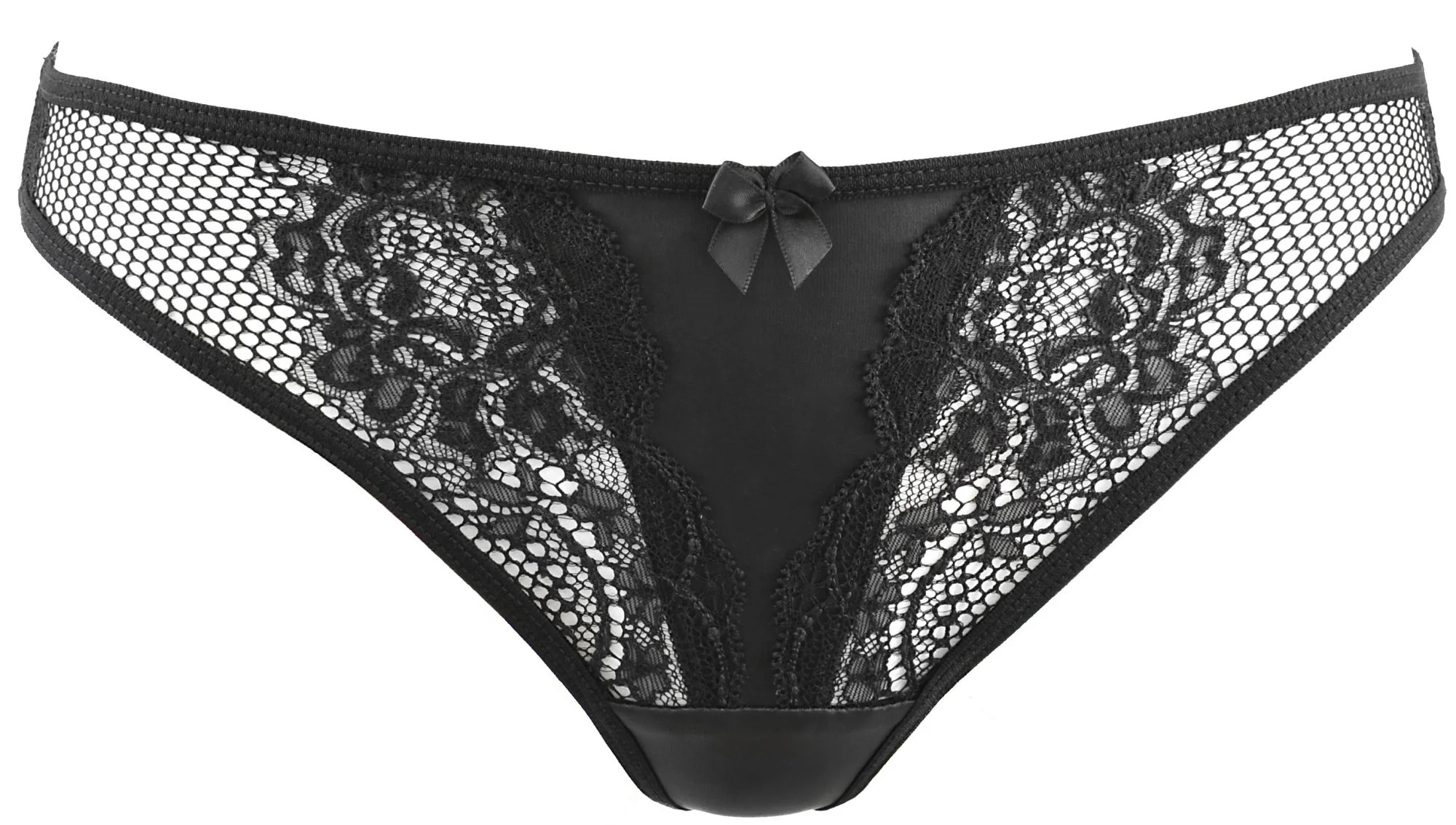 Tato svůdná a koketní tanga jsou dokonalým doplňkem k podprsence V-10701. Dokonale zdůrazní kulatost hýždí a dodají vašim nohám módní vzhled. Jsou vyrobeny ze stejné krajky, jemné a smyslné, vzadu mají latex jako podprsenka, aby se oba kusy prádla dokonale doplňovaly.