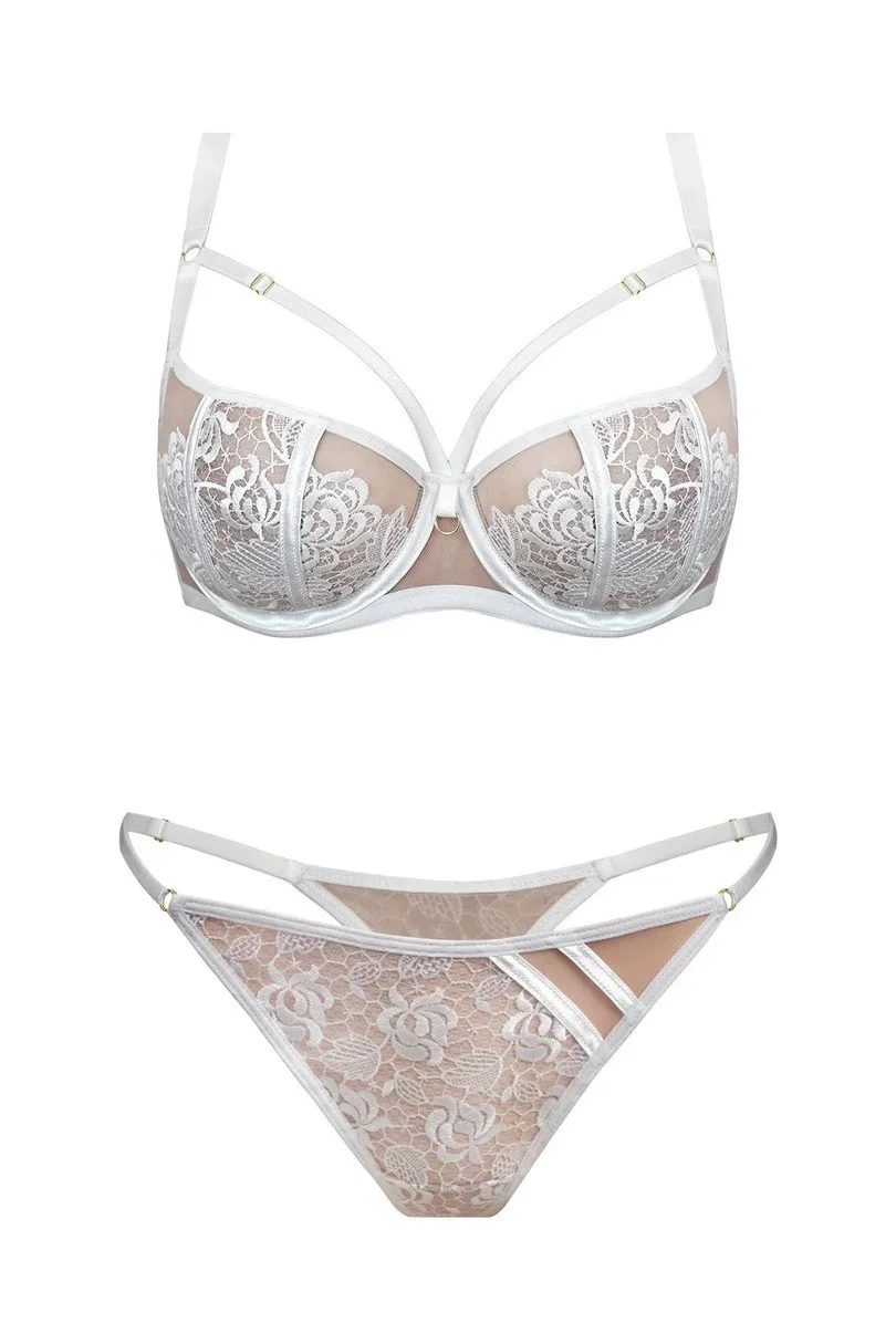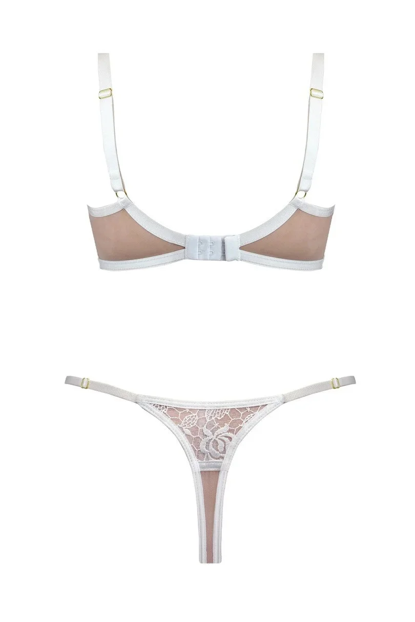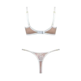 String z bílé látky, která je podšitá béžovou síťovinou, boky tvoří tenká nastavitelná ramínka