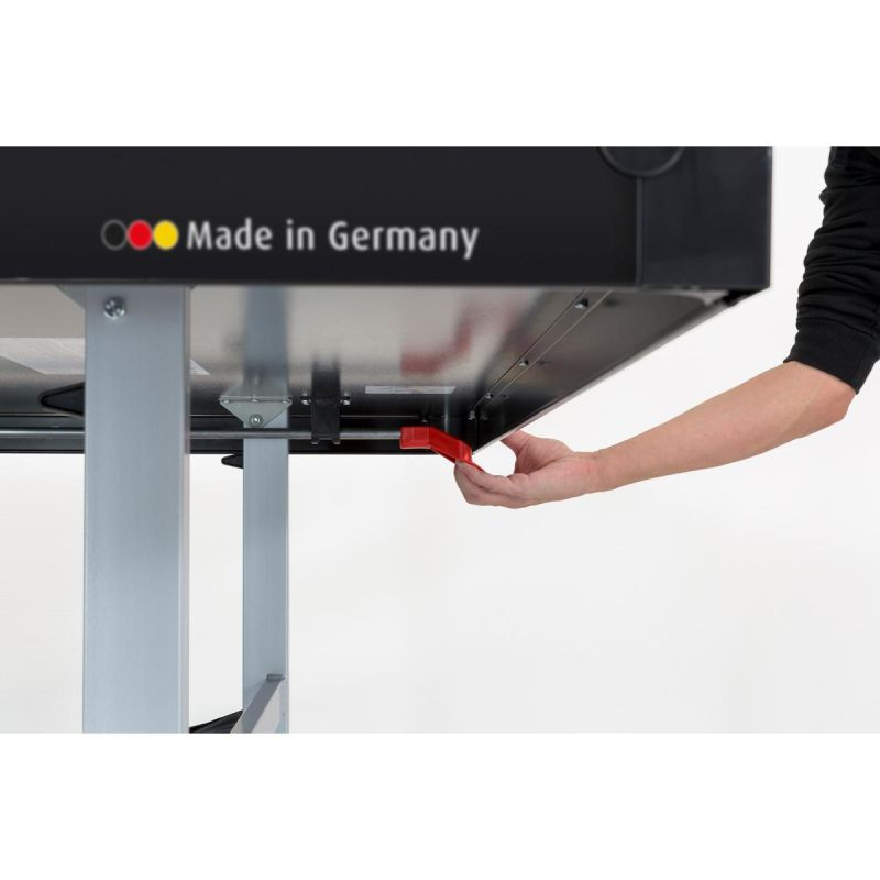 Pro výrobu svých stolů na stolní tenis používá Sponeta speciálně konstruovanou desku z dřevěných hoblin - 3tecWOOD premium. Vnější vrstvy jsou obzvláště jemné a vysoce zhutněné, aby umožnily optimální pokrytí povrchu. Struktura desky zajišťuje stabilní a rozměrově stálý povrch z ekologicky šetrné výroby s certifikací PEFC. V továrně Schlotheim se povrch zušlechťuje ve třech opakovaných výrobních fázích nanesením několika vrstev základního nátěru, barvy a laku.