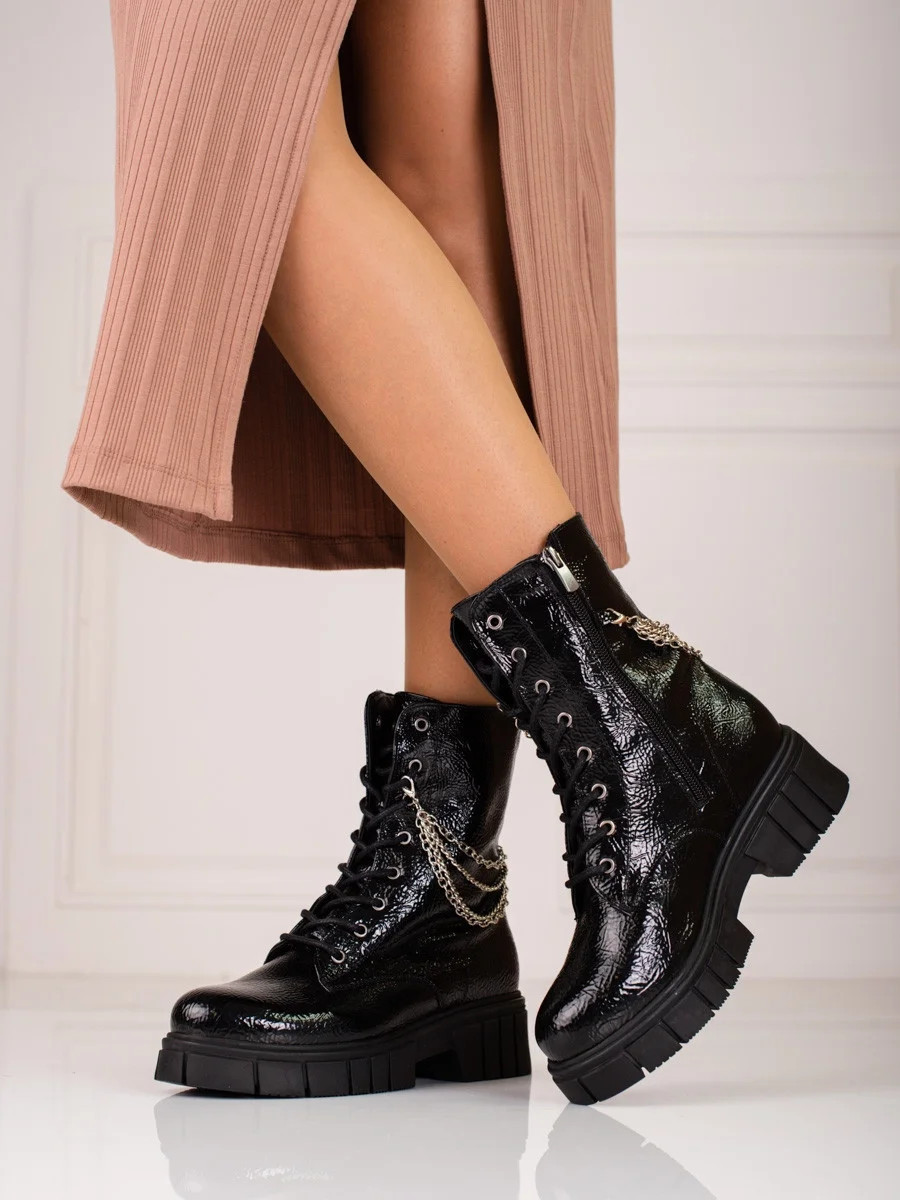 Přidání recenze k Stylové černé dámské kotníčkové boty na plochém podpatku