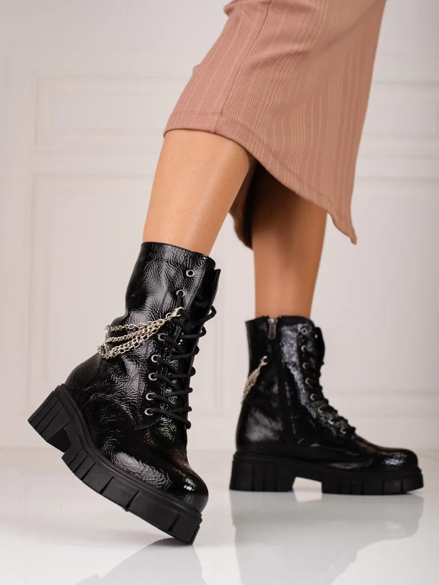 Stylové černé dámské kotníčkové boty na plochém podpatku