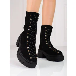 Stylové černé dámské kotníčkové boty na širokém podpatku