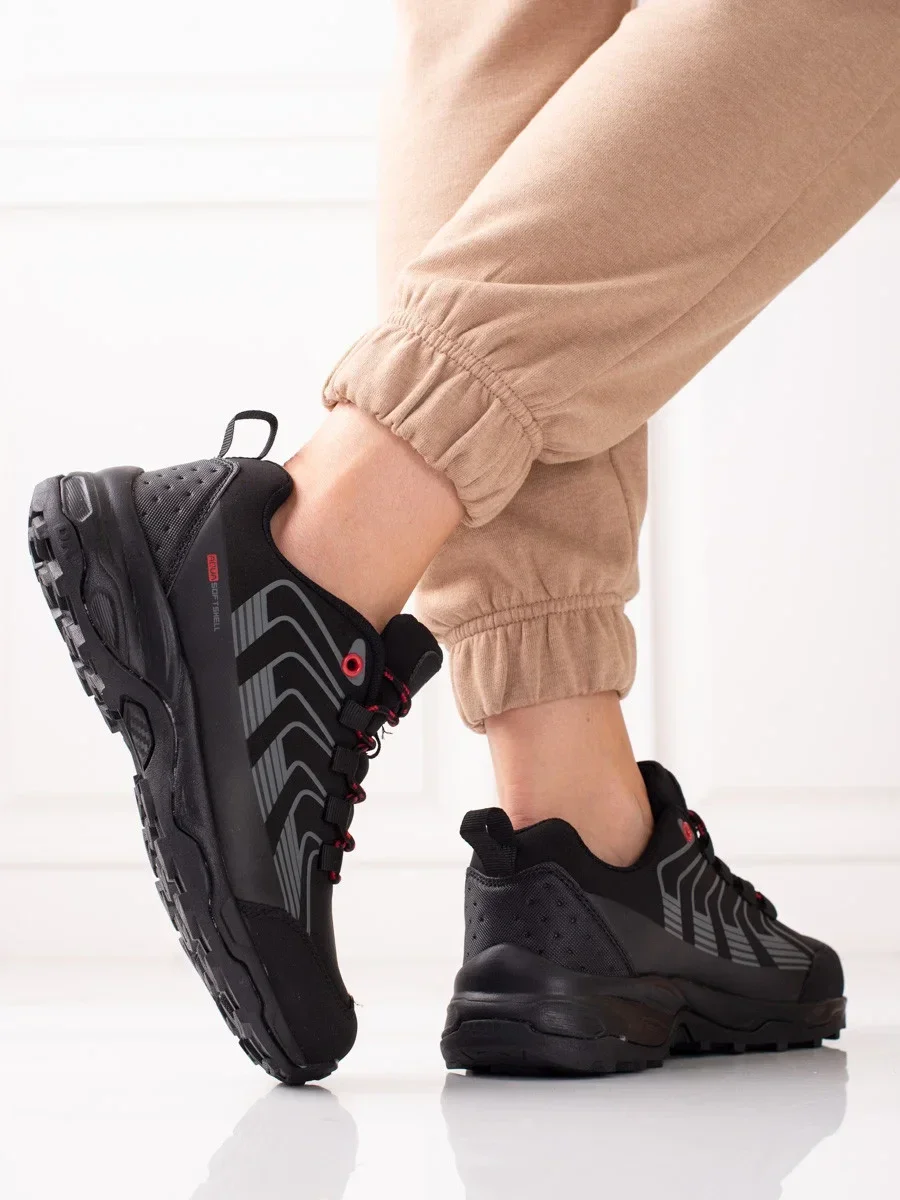 Stylové černé trekingové boty dámské bez podpatku