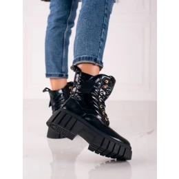 Stylové dámské černé kotníčkové boty na klínku