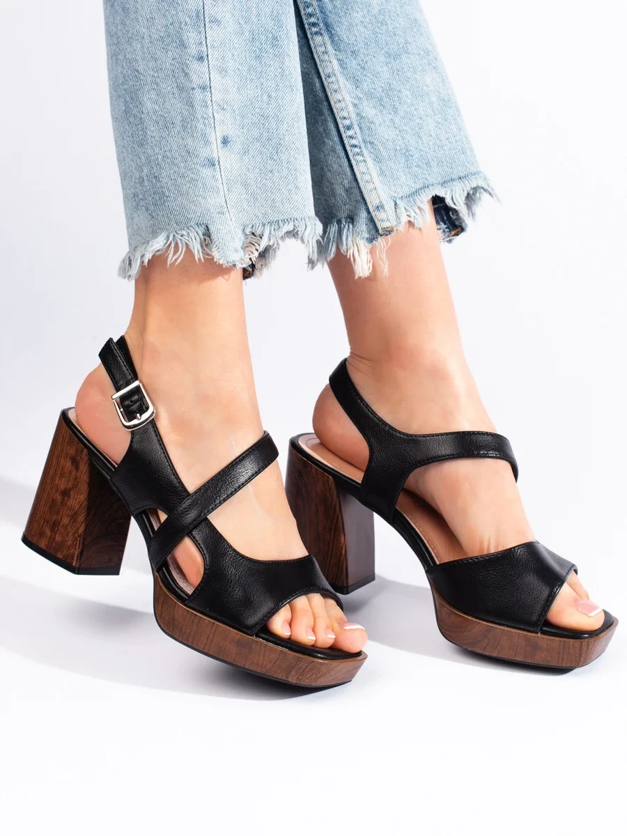Stylové dámské černé sandály na širokém podpatku