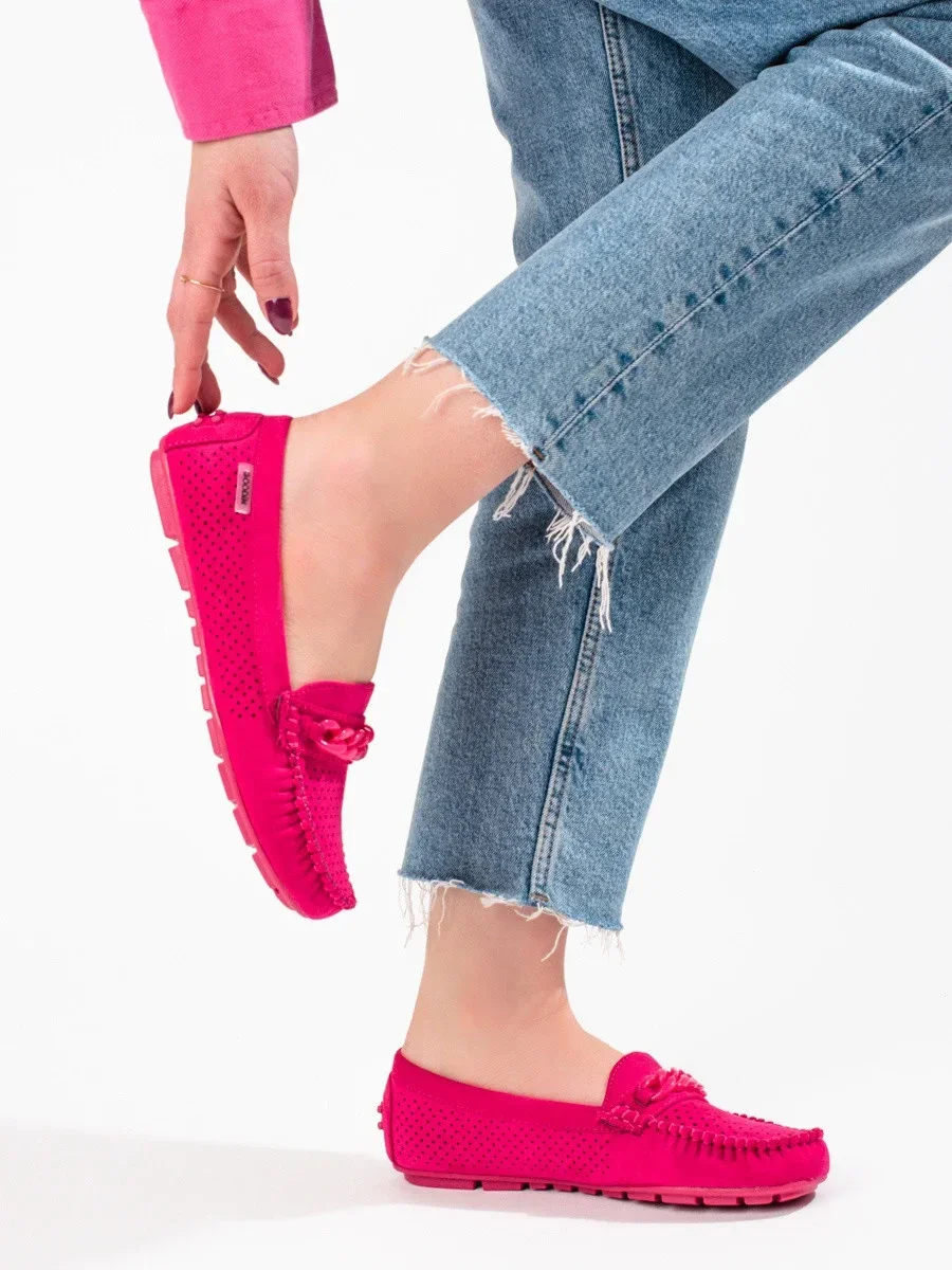 Stylové dámské červené mokasíny bez podpatku